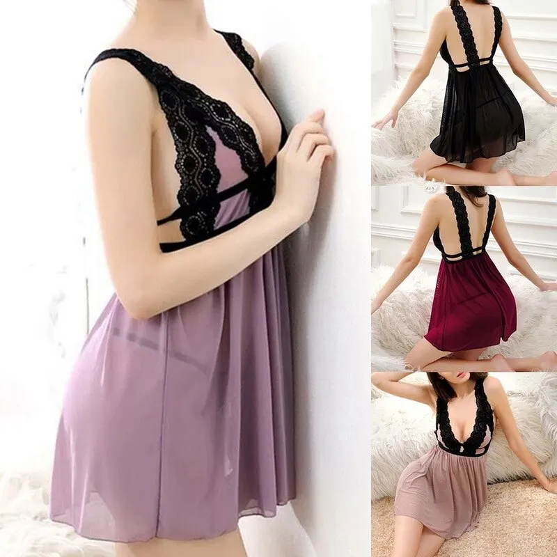 Сексуальная кружевная атласная ночная рубашка, эротические костюмы,...
