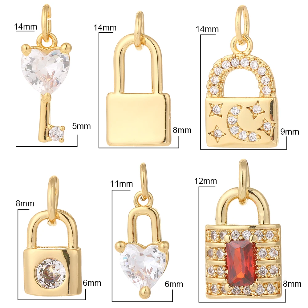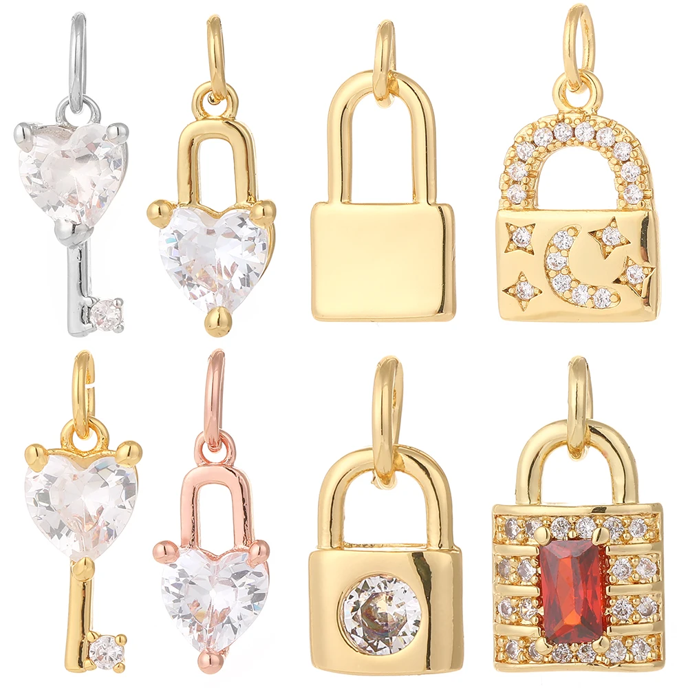 Подвеска-замок для изготовления ювелирных изделий, изящная подвеска в форме сердца, шармы для сережек, ожерелий, браслетов, из золота и меди