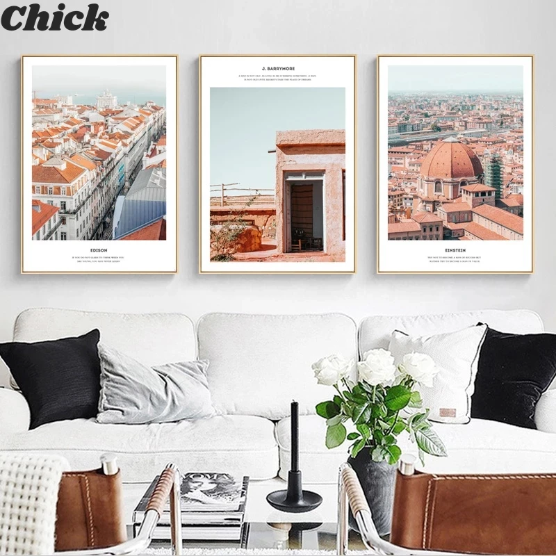 Городской морской закат настенные картины для спальни пейзаж розовая стена искусство на холсте скандинавский Декор для гостиной домашние плакаты и принты