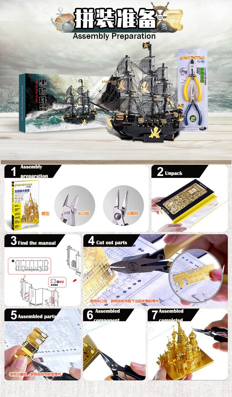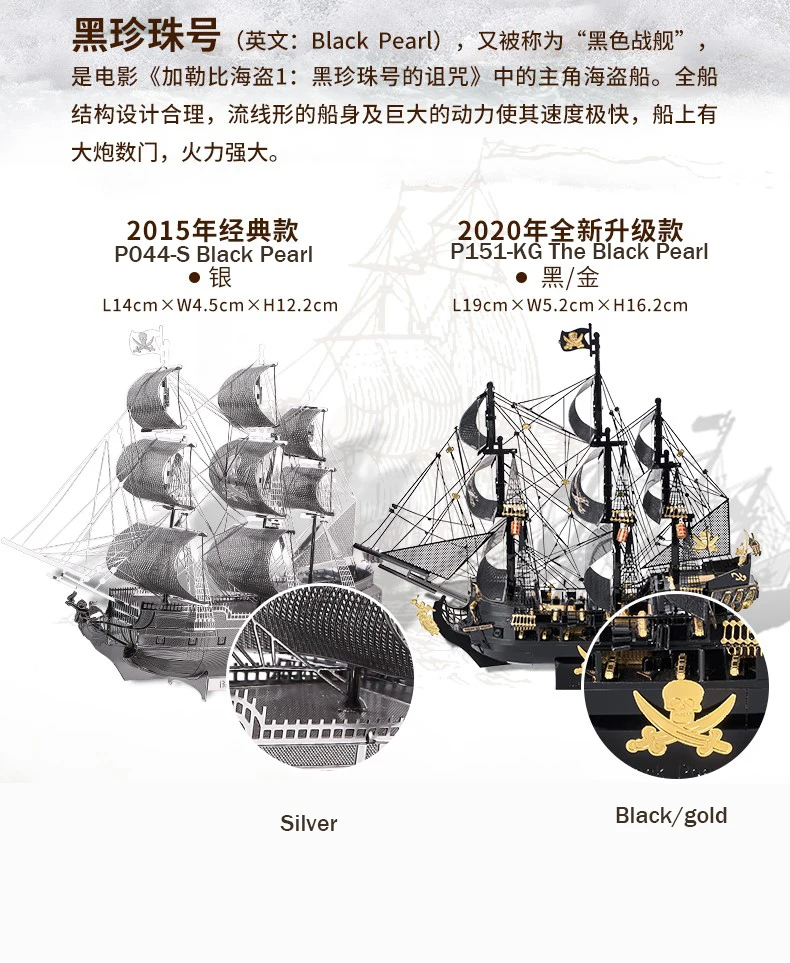 3D металлический пазл с чёрным жемчугом, набор для сборки моделей сделай сам, лазерная резка, пазл, игрушка в подарок, P151-KG