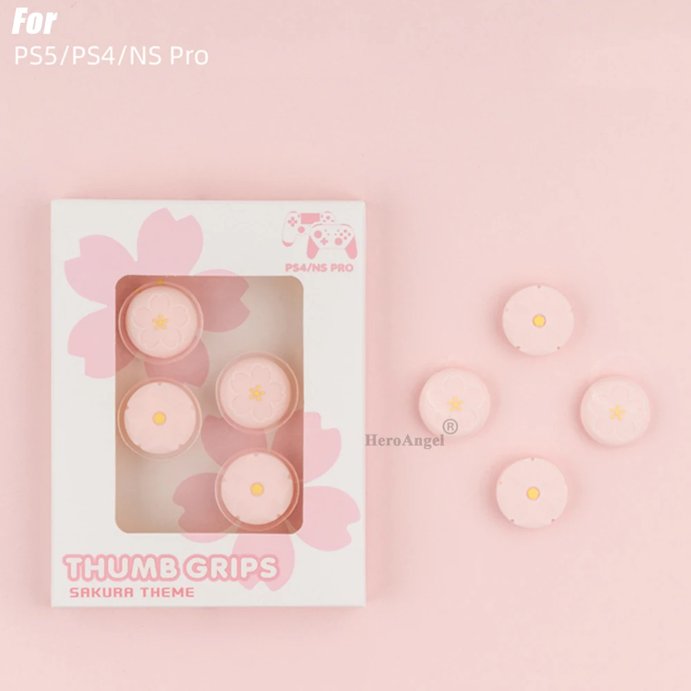 4 шт. розовый силиконовый чехол Sakura контроллер аналоговый джойстик для пальца ручки крышки для PS5 PS4 Slim/Pro для NS Pro защитный чехол для джойстика