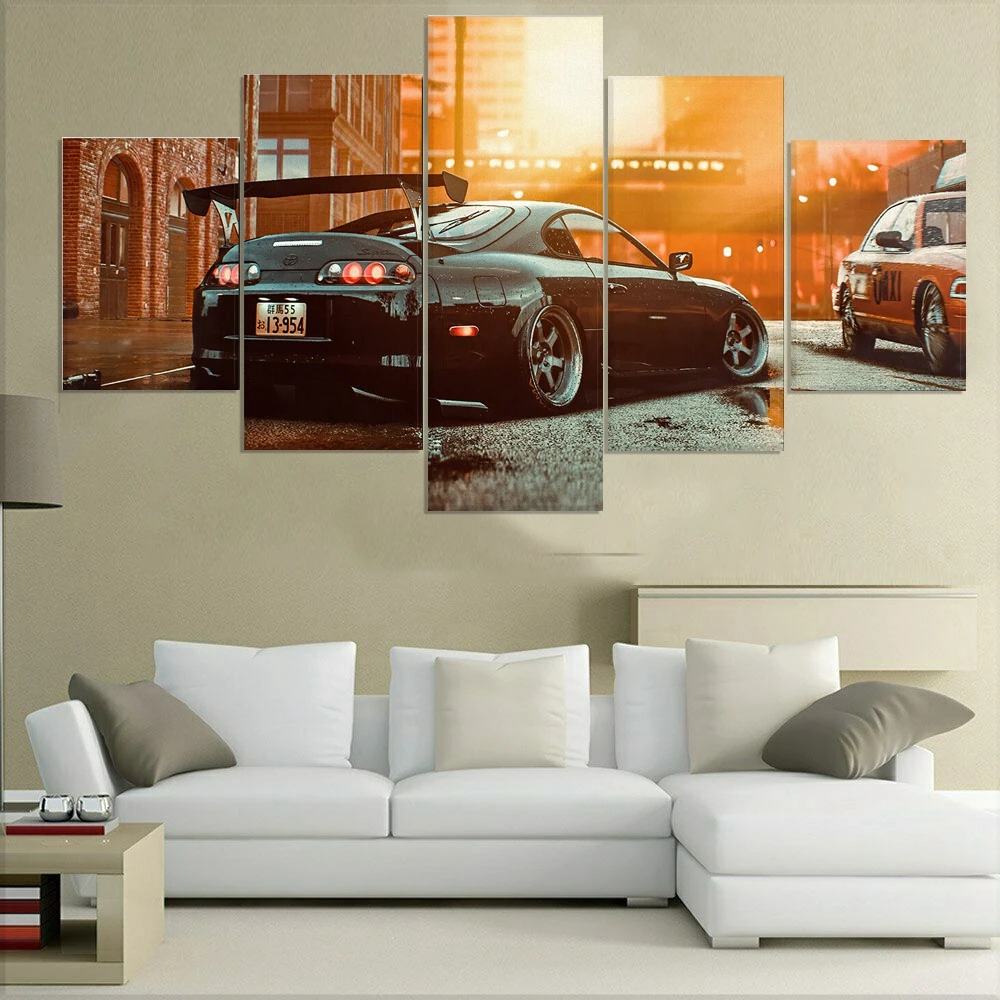 Современные настенные картины на холсте, 5 панелей, Постер для Toyota Supra, черный классический автомобильный принт, гостиная, домашнее украшение для стен
