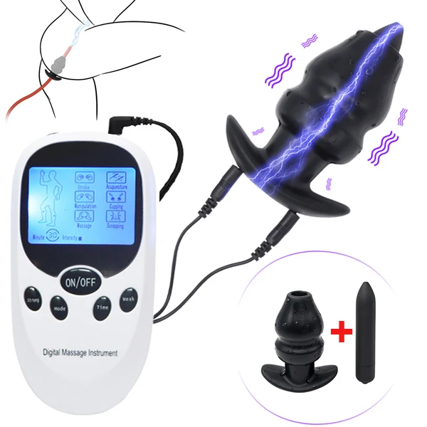 Электрический шок полый Анальная пробка вибратор электро стимуляция массажер простаты анальный расширитель вагинальный спектральный клизма секс-инструмент