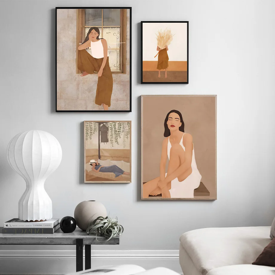 Минимализм абстрактная девушка геометрический пейзаж линия скандина...