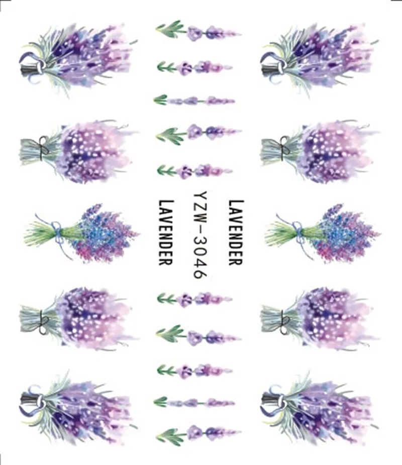 1 лист 2021 Лавандовый букет наклейки на воду украшения для ногтей ...