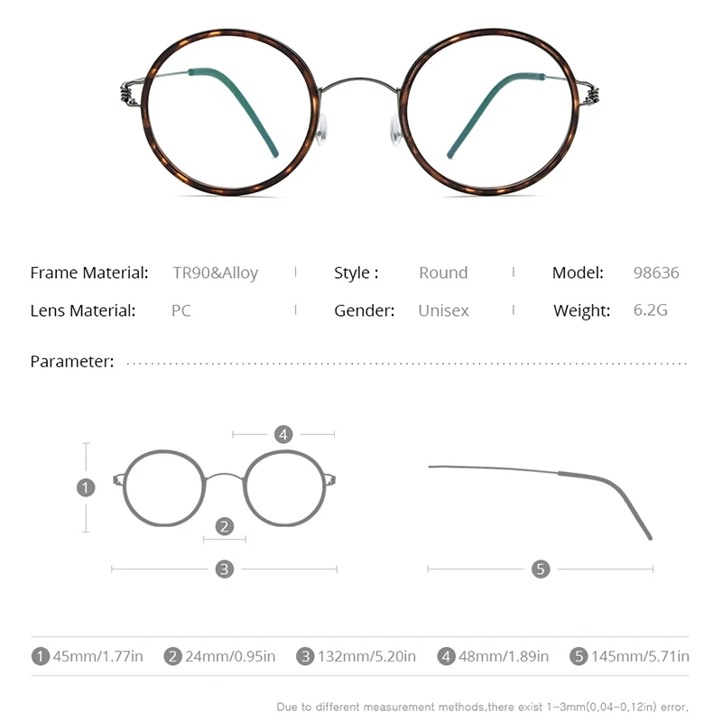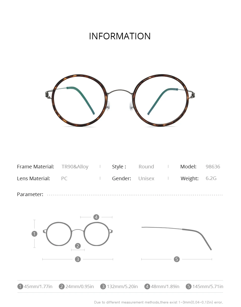 FONEX Мужская и женская круглая оправа, винтажная оправа из чистого...