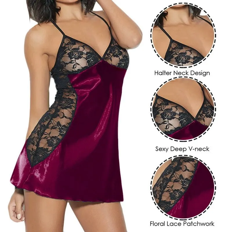 Ночная сорочка женская кружевная атласная, эротические костюмы, ниж...