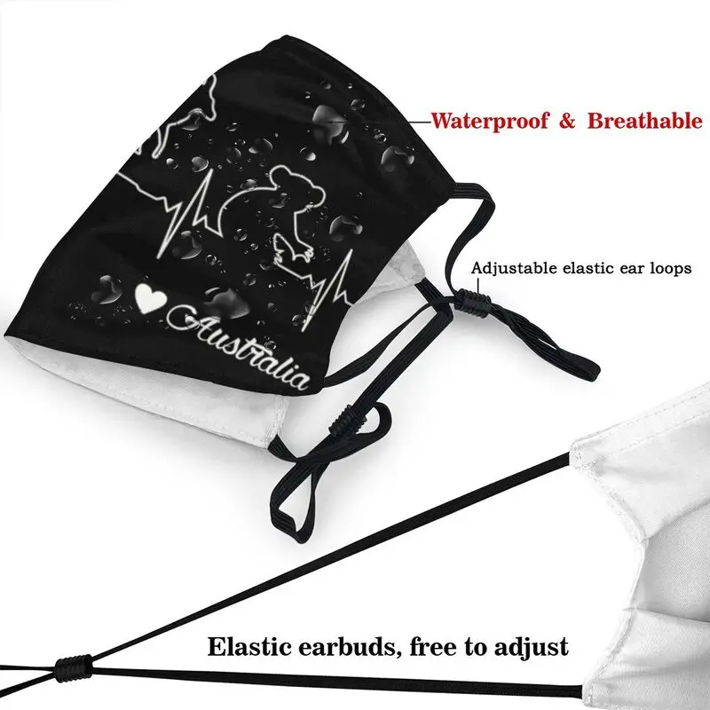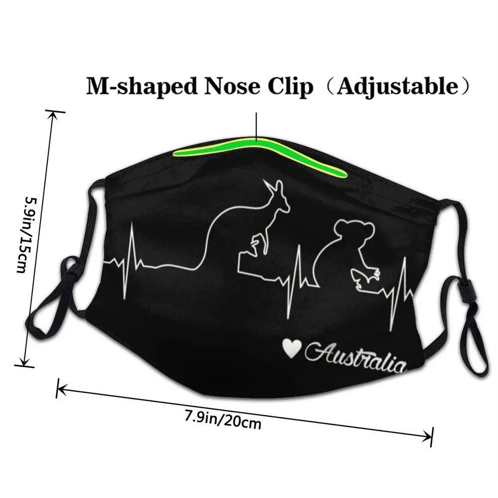 Австралийского кенгуру многоразовые унисекс маска для лица для взрослых коала "кардиограмма сердца против дымки пыли Защитная крышка респиратор рот муфельная печь