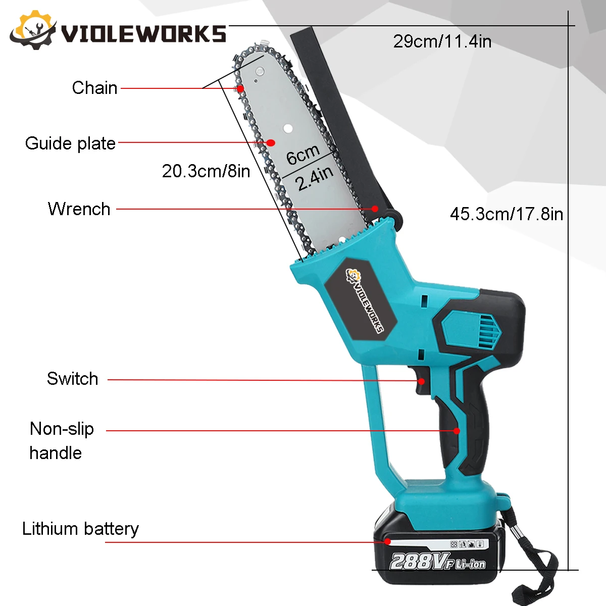 Электрическая пила 288VF, 8 дюймов, 2 литий-ионных аккумулятора 22980 мА ч, с аккумулятором для древесины Makita 18 в