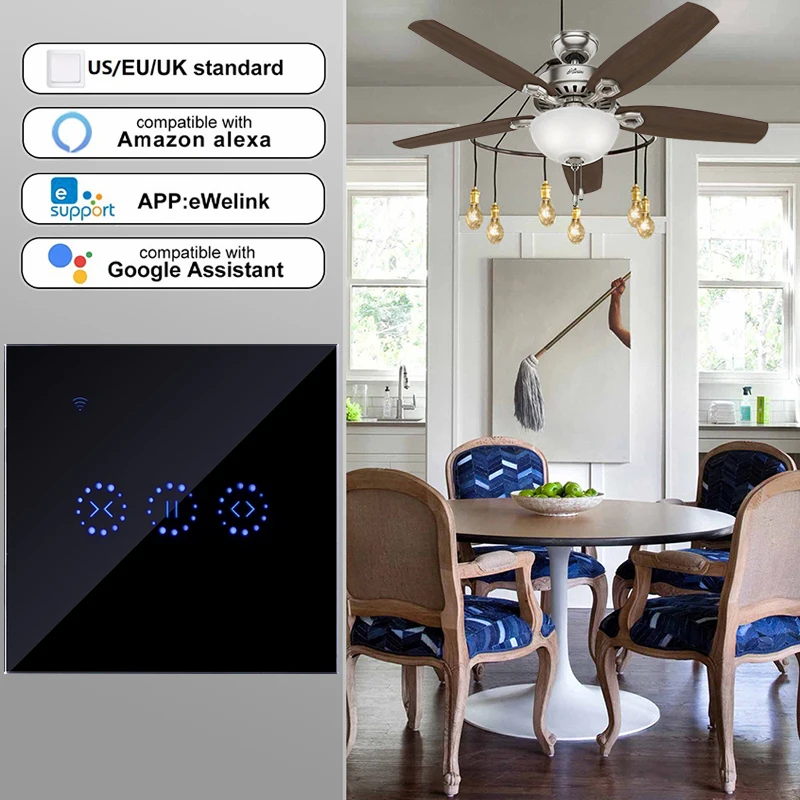 Этот сенсорный выключатель поддерживает максимальную мощность 2200 Вт, которая может работать с большинством умных штор с функцией дистанционного управления. Абс огнестойкий материал, безопасный для высокой мощности домашнего использования. Напряжение: напряжение переменного тока 100-250 В.