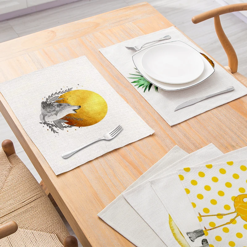 Nordic хлопковая и льняная салфетка маленький желтый свежий Non-slip западные подстилки-салфетки под столовые приборы Водонепроницаемый и теплоизоляция Коврики на стол 32*42 см