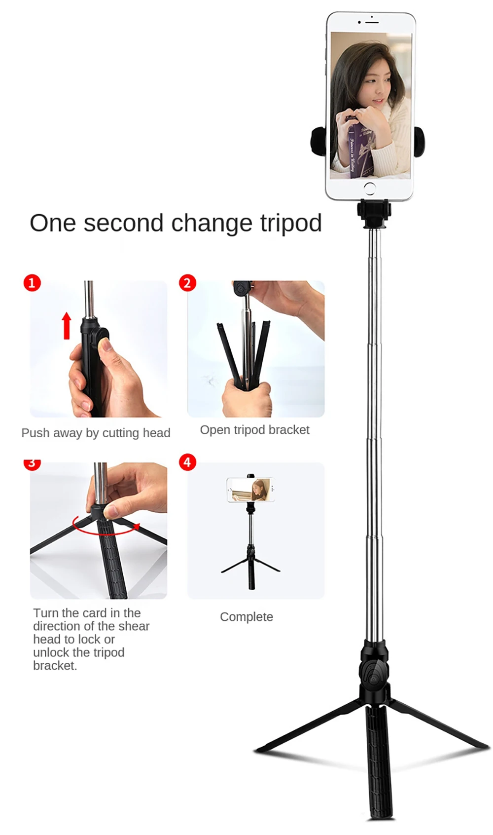 -Выдвижная селфи-палка, удобная для съемки более красивых фотографий, ультра-светильник может быть удобным и полезным-высококачественный растягивающийся стержень из нержавеющей стали и высокопрочный Пластиковый штатив могут быть стабильными и долговечными, гарантируем Стабильность фотографии, также может быть как мобильный телефон держатель на земле или на рабочем столе, Смотрите фильмы или видео на мобильный телефон, Освободите руки, удобно и полезно
