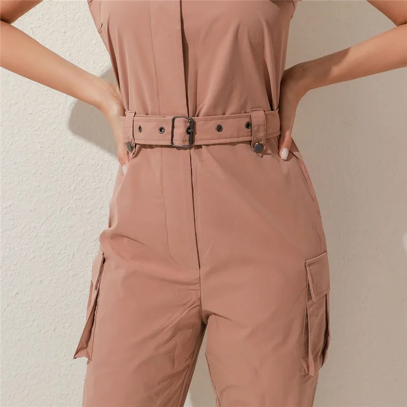 Женский Повседневный однотонный комбинезон, лето 2021, глубокий v-образный вырез, рубашка на пуговицах, комбинезон с коротким рукавом, офисный женский цельный комбинезон с поясом