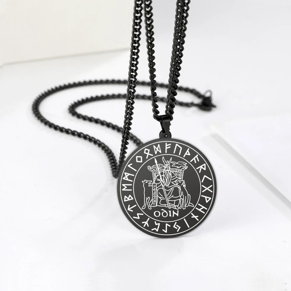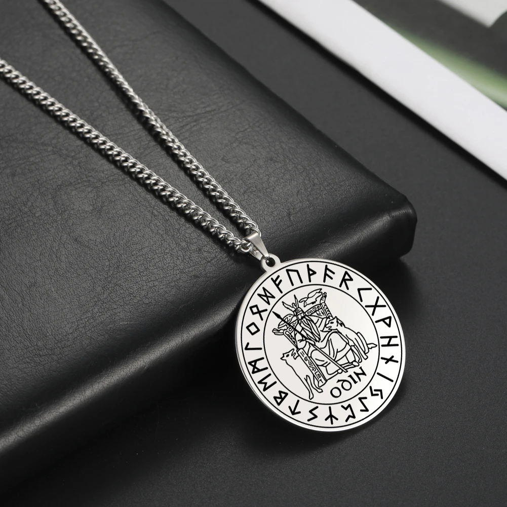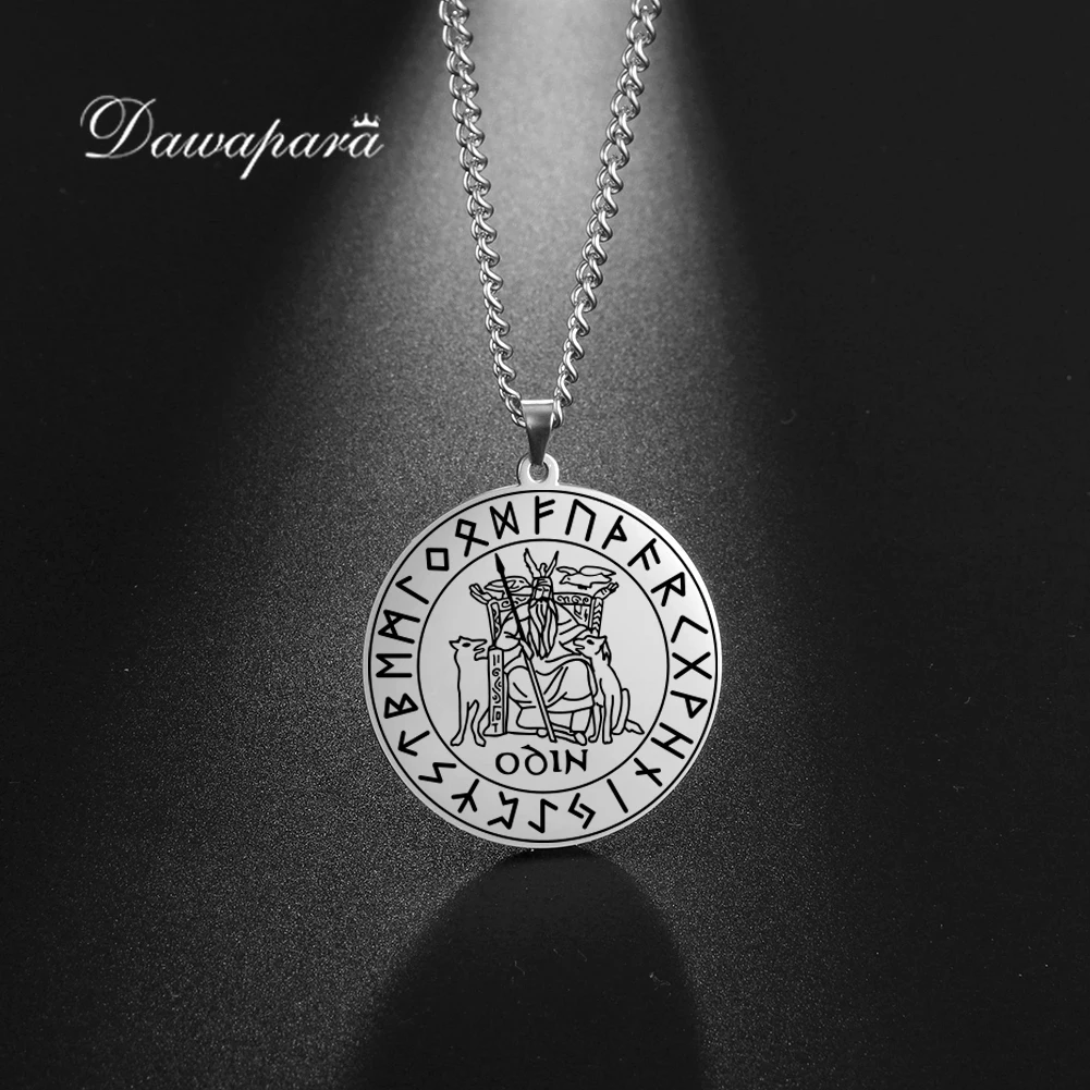 Dawapara Скандинавская мифология бог один с двумя волками Подвески Викинг ожерелья из нержавеющей стали мужские украшения