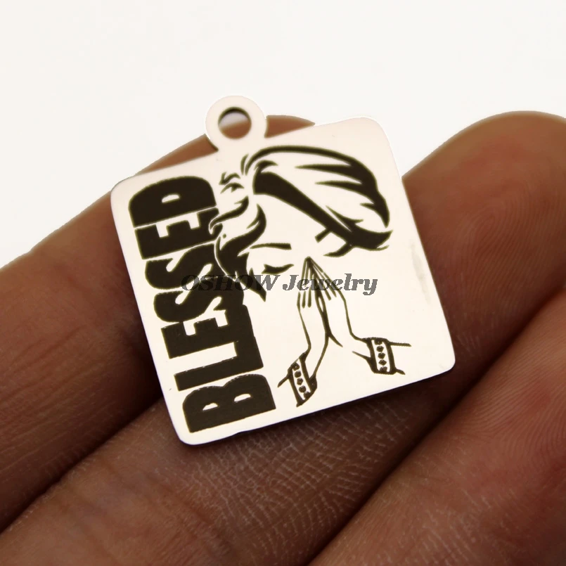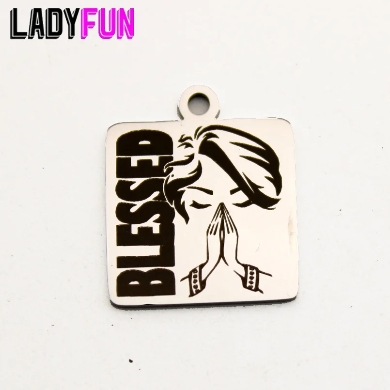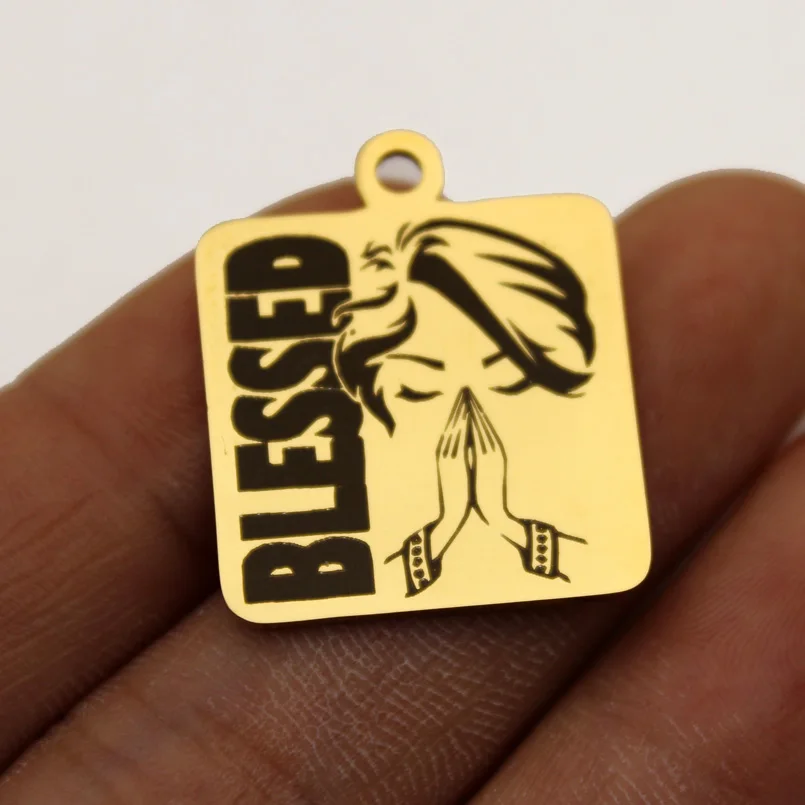 Blessed афро для женщин девушек цепочка на счастье очаровательный амулеты из нержавеющей стали благословил молимся женские Полированная зеркальная поверхность Подвеска 10 шт.лот