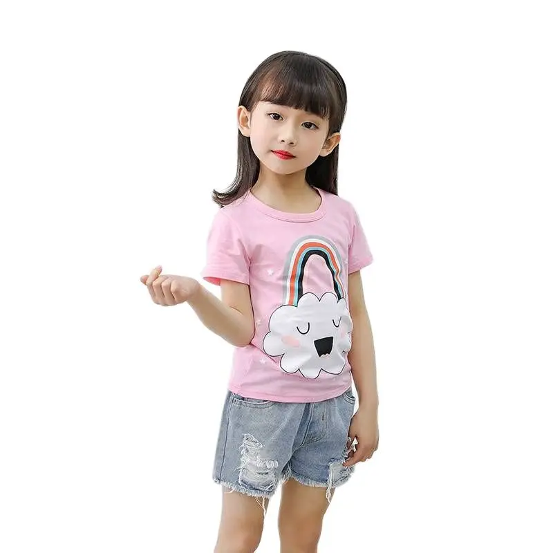 2021 Детская летняя одежда, хлопковые футболки с коротким рукавом для мальчиков и девочек, графическая футболка с мультяшным радужным дизайном, модная одежда для девочек с круглым вырезом