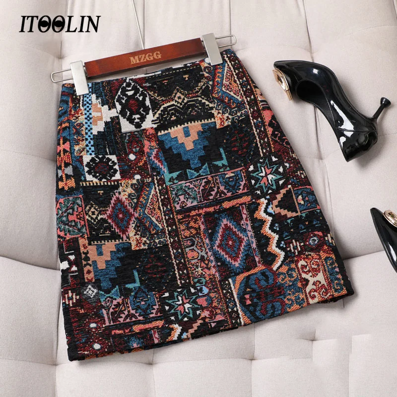 Винтажная Женская юбка с вышивкой The National Wind, трапециевидная...