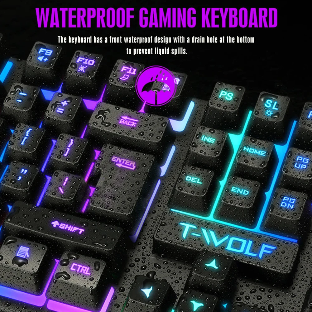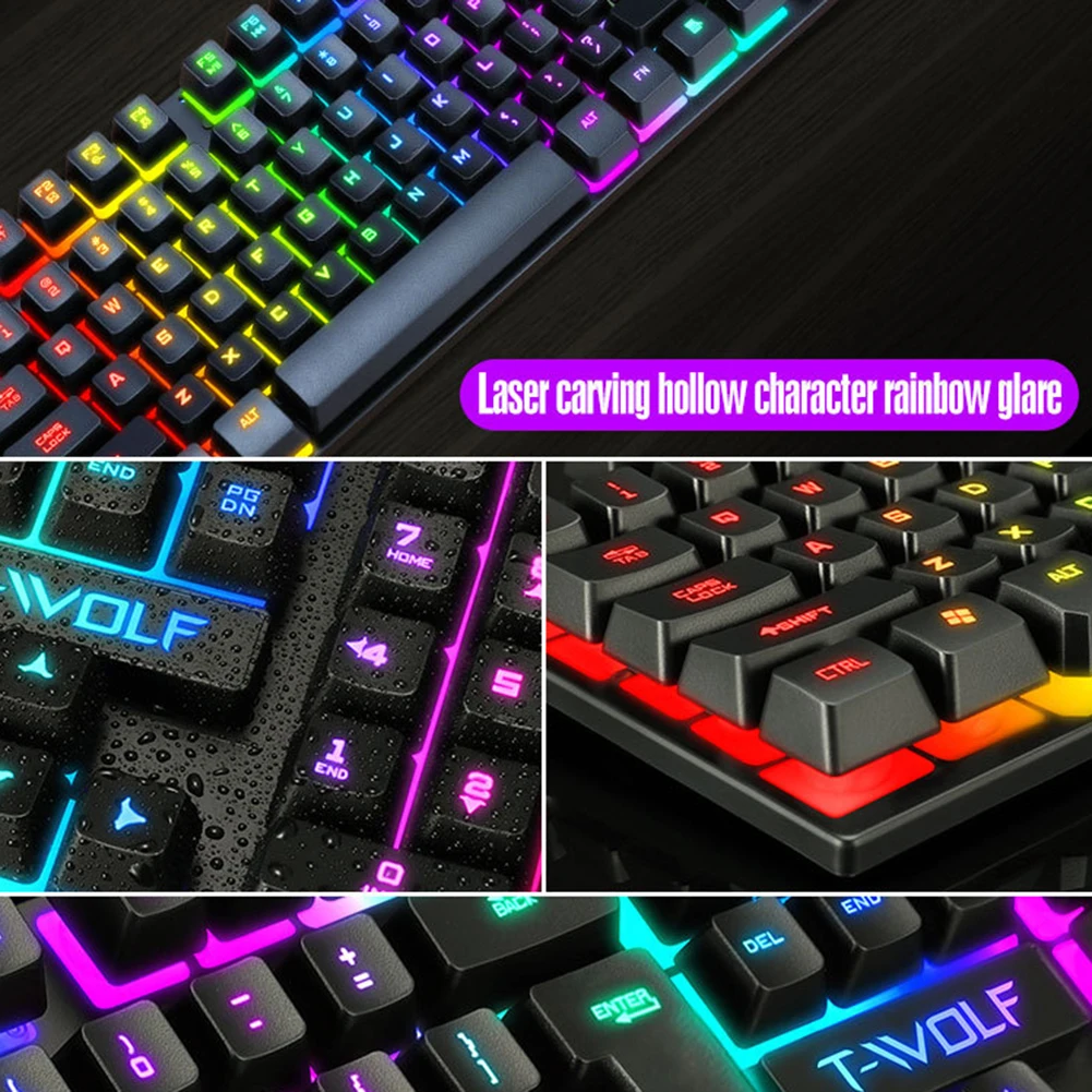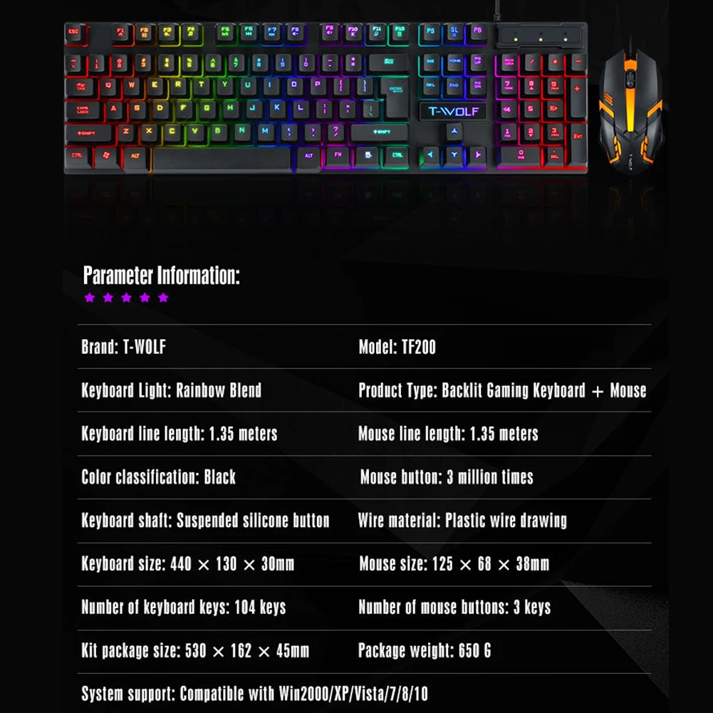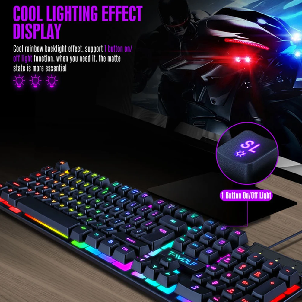 Проводная клавиатура и мышь gaming, эргономичная клавиатура с RGB-подсветкой, бесшумная, подходит для ПК и ноутбука
