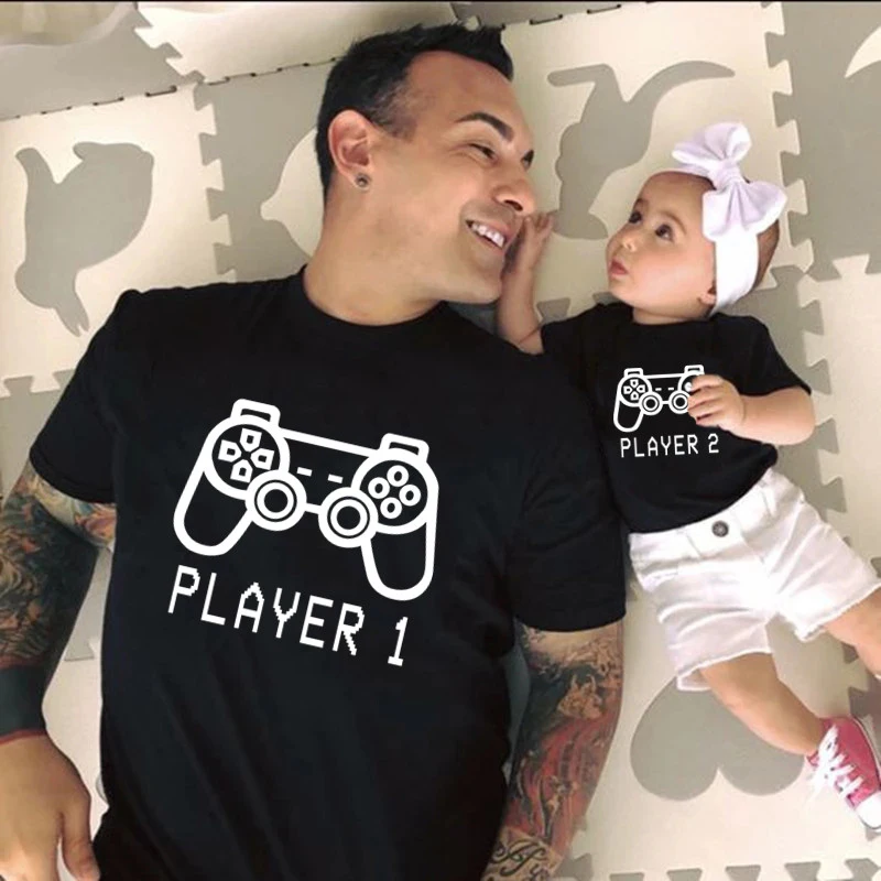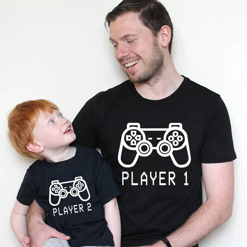 2021 Новое поступление, одинаковые футболки для семьи; Одежда для папы, дочки и сына плеер 1 2 печатающие черная футболка, гимнастический костюм Семейные комплекты