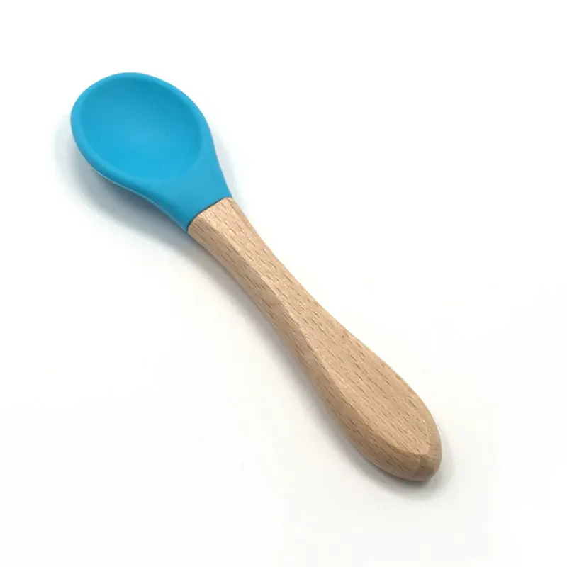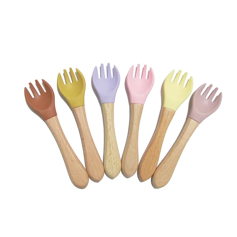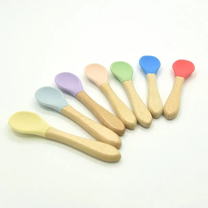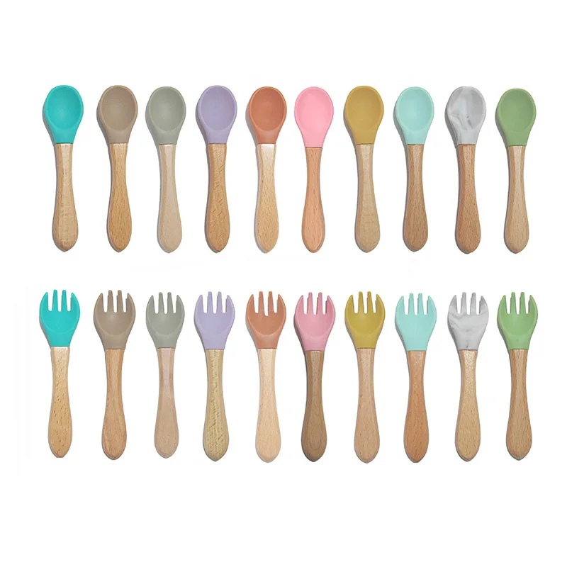 2 шт. деревянные силиконовая ложка Вилка органический материал, не содержащий BPA мягкий Кормление посуда для новорожденных, детей ясельного возраста, вечерние аксессуары Еда Класс