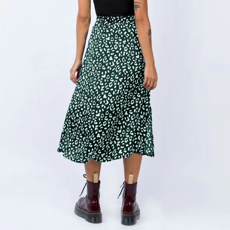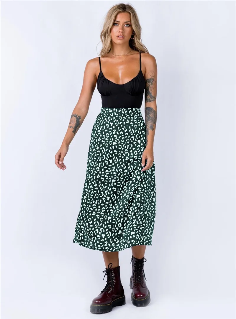 Юбка-миди женская летняя, с цветочным принтом и разрезом, с высокой талией