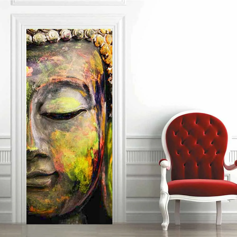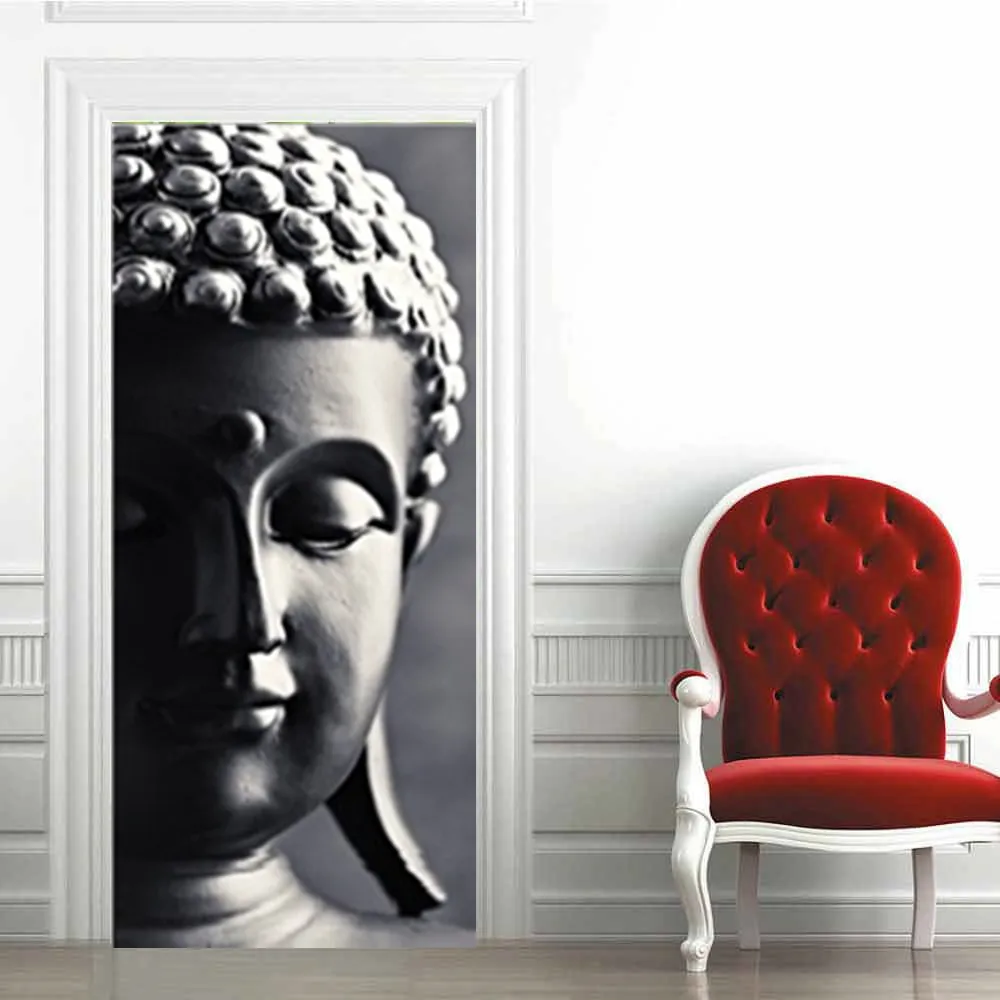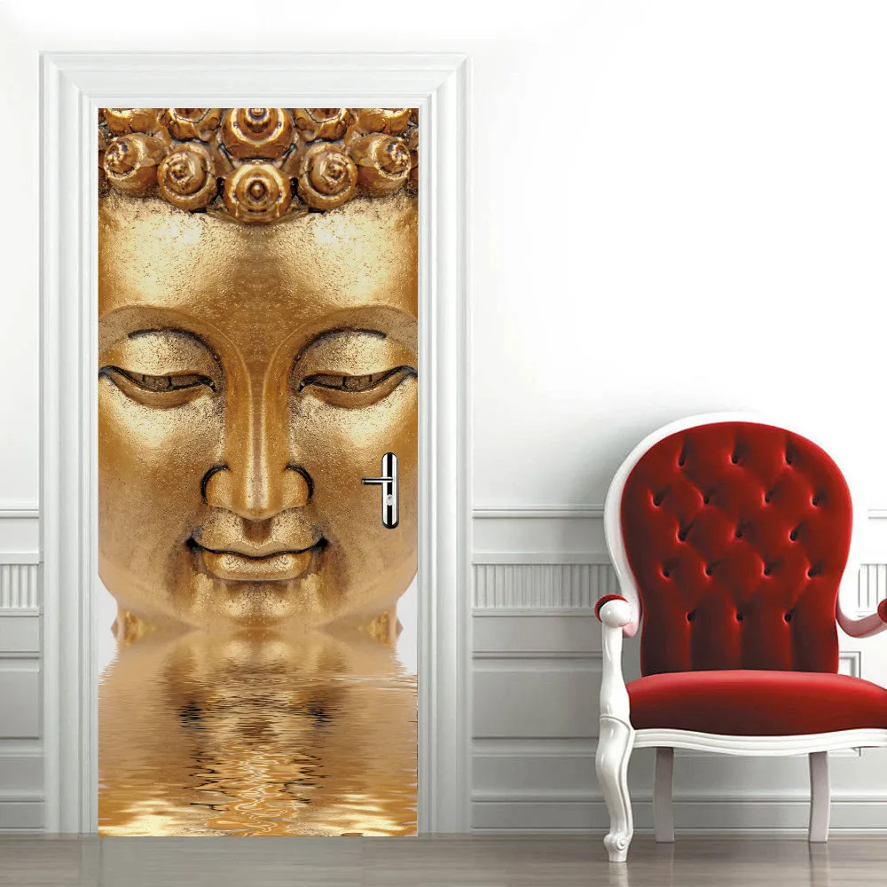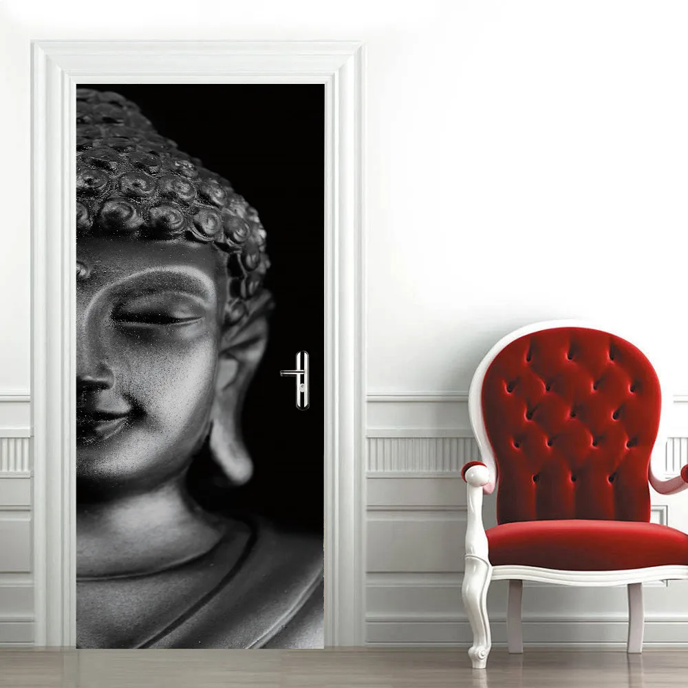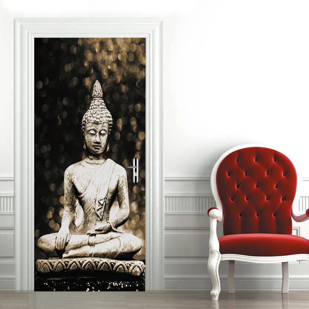 Клейкие обои для двери Будды, водонепроницаемые виниловые рулонные контактные бумажные двери, шкафы, Современная декоративная мебель для рабочего стола