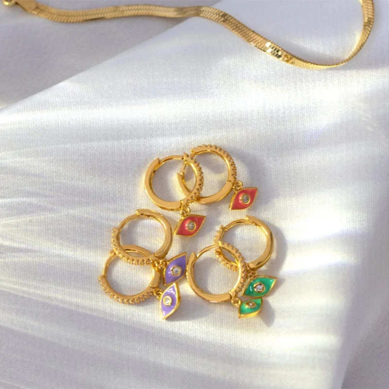 Автоклав серьги для Для женщин 925 пробы серебра в форме ангела глазные капли масла фиолетового и зеленого цветов, серьги-кольца ювелирные изделия Joyero