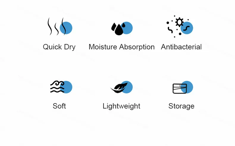CharacteristicsWater Absorption / Quick Drying / Antibacterial / Portable