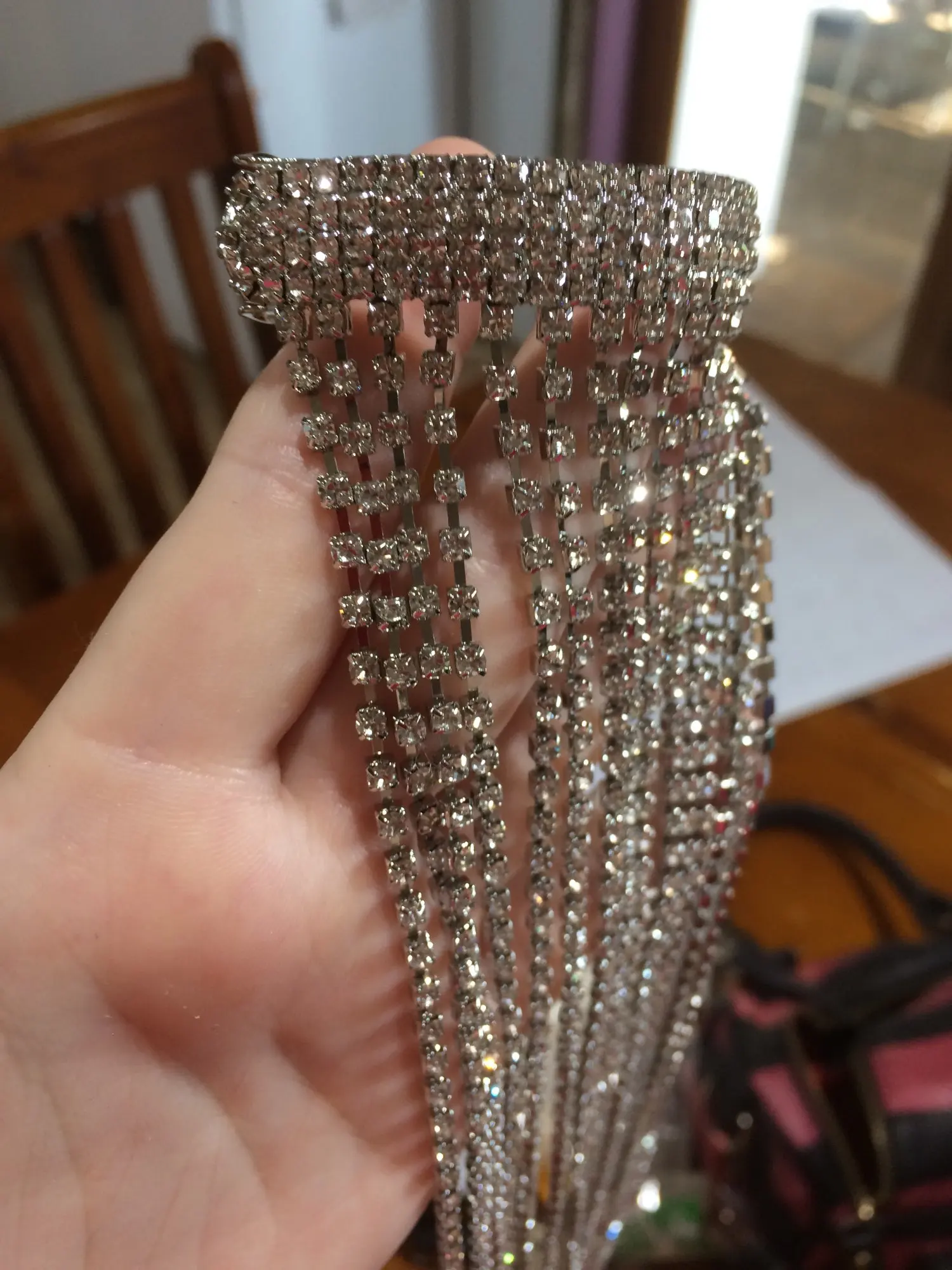 Это не тяжелая одежда, у меня очень длинные волосы не вырывают ваши волосы или что-то похожее на то, что удобно носить, выглядит очень красиво, хорошее качество, стразы, кристаллы, красиво, легко носить