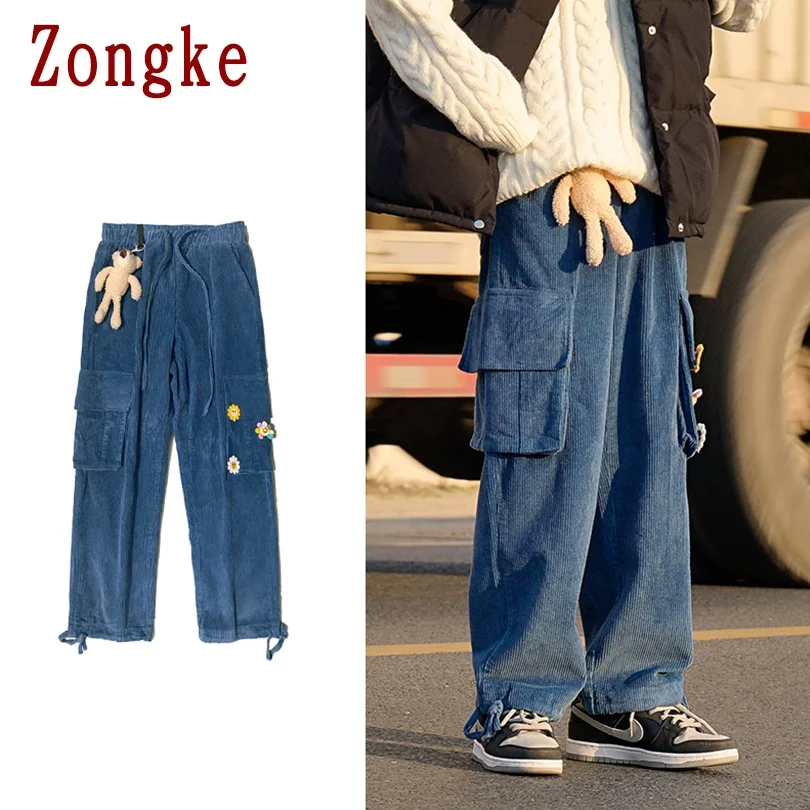 Вельветовые мужские брюки Zongke Bear Doll, мужские брюки в стиле Харадзюку, Новое поступление 2022