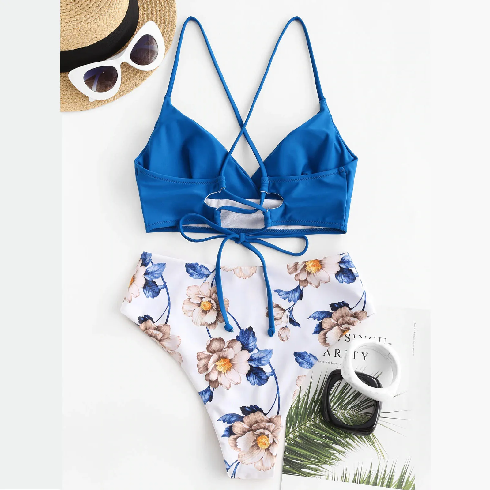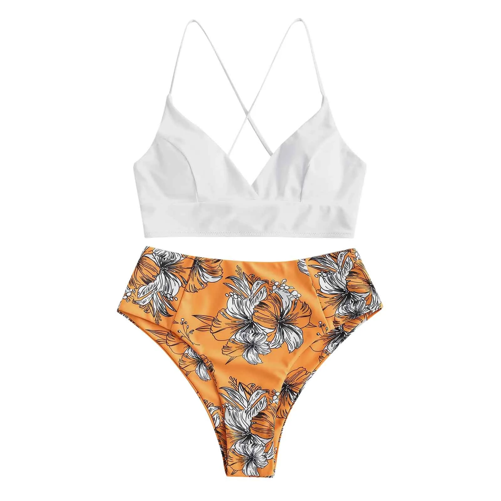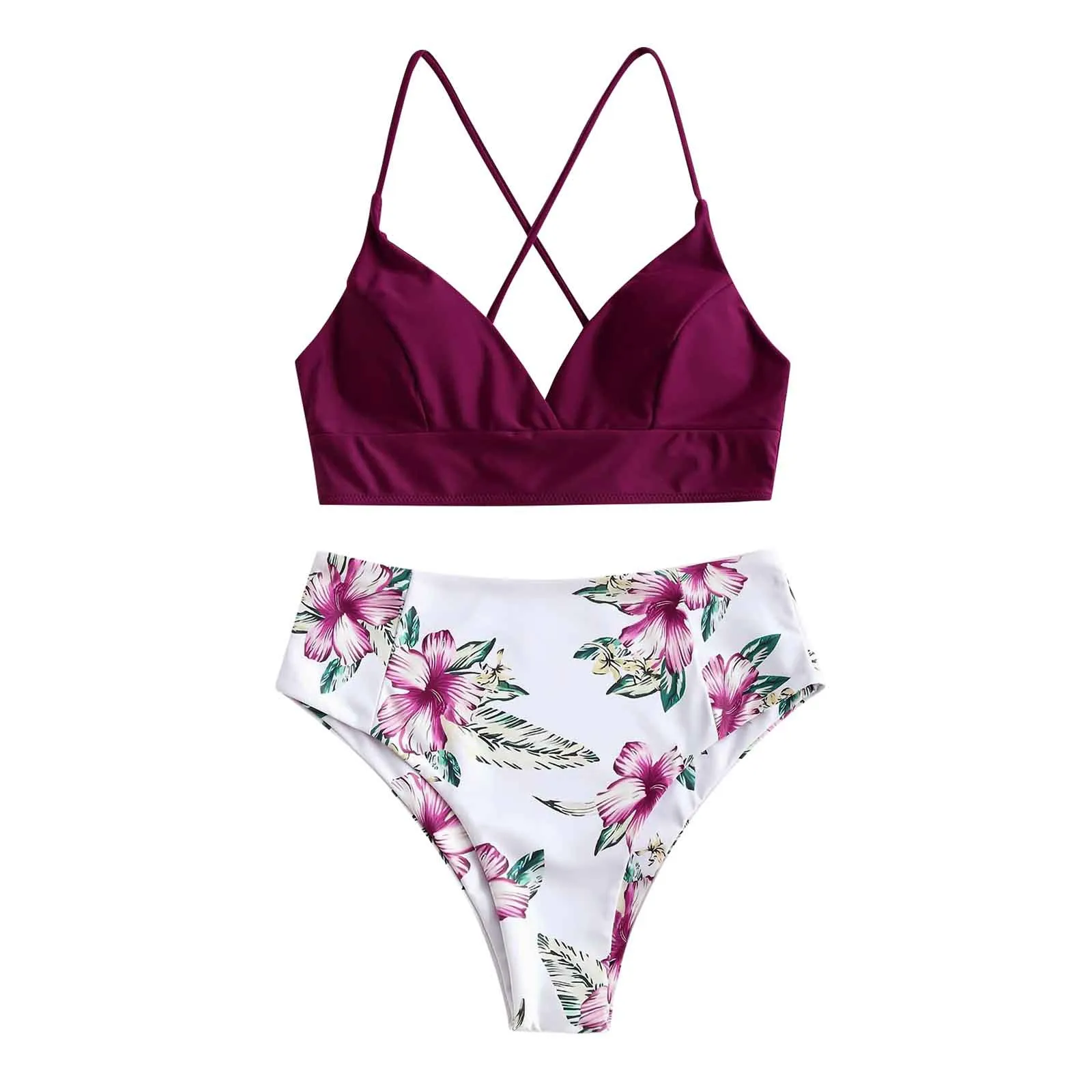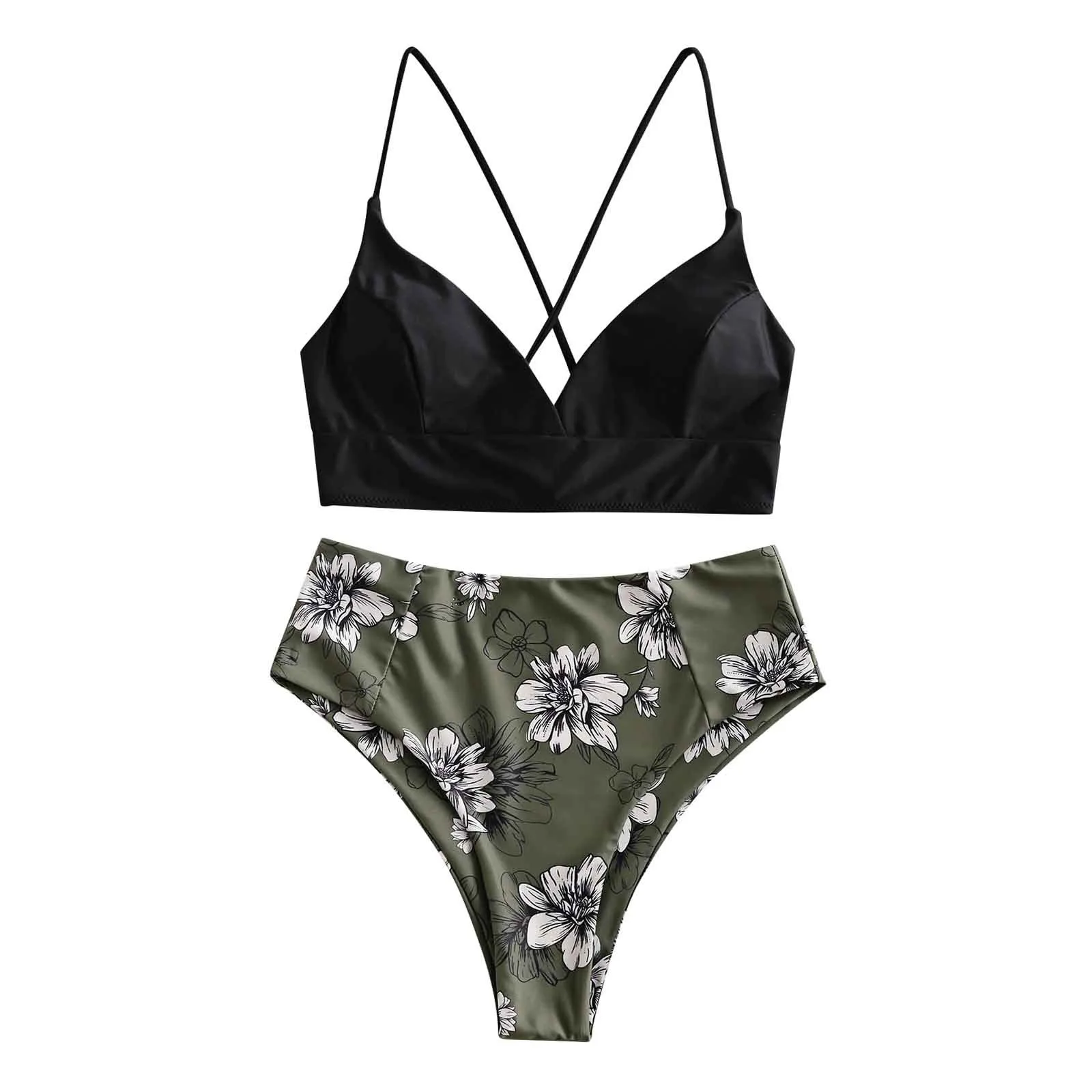 Женский купальник пуш-ап, Раздельный комплект из двух предметов с цветочным принтом, пляжный купальник, платье-бикини, купальный костюм, бикини 35, 2021