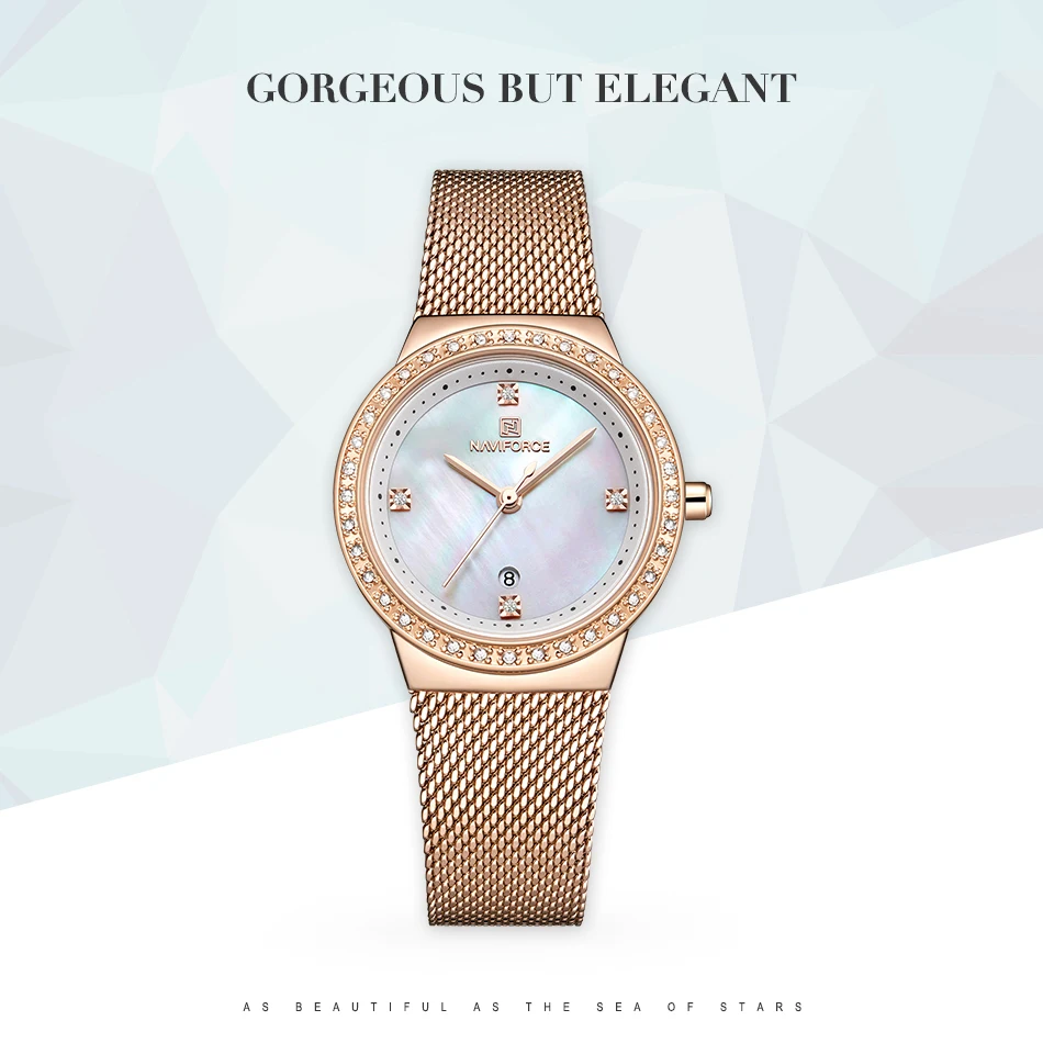 Часы наручные NAVIFORCE женские кварцевые, брендовые Роскошные деловые, цвета розового золота