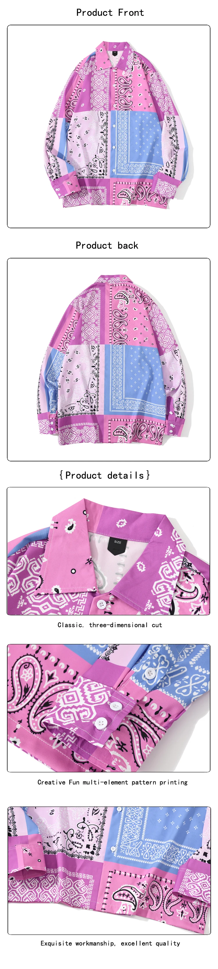 Весенне-летняя Гавайская бандана оверсайз Мужская рубашка с длинным рукавом рубашка с узором "огурцы" Man Harajuku Топ винтажная повседневная мужская одежда