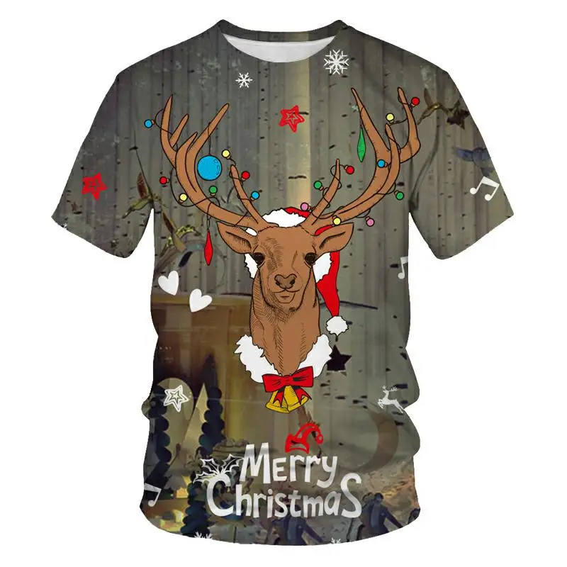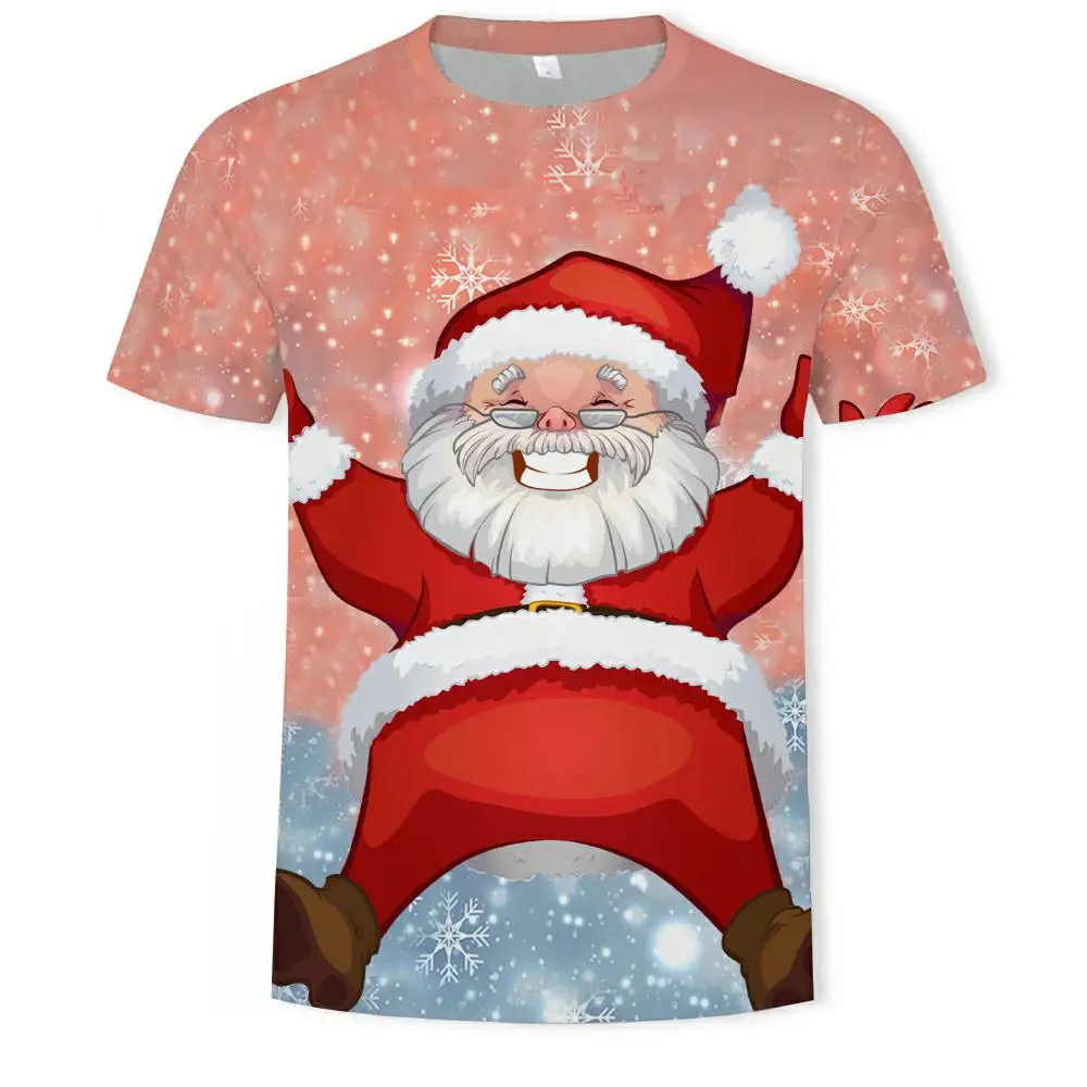 Модная Рождественская футболка с 3D принтом для мужчин и женщин, футболка с коротким рукавом из мягкого материала, Уличная Повседневная свободная Мужская футболка