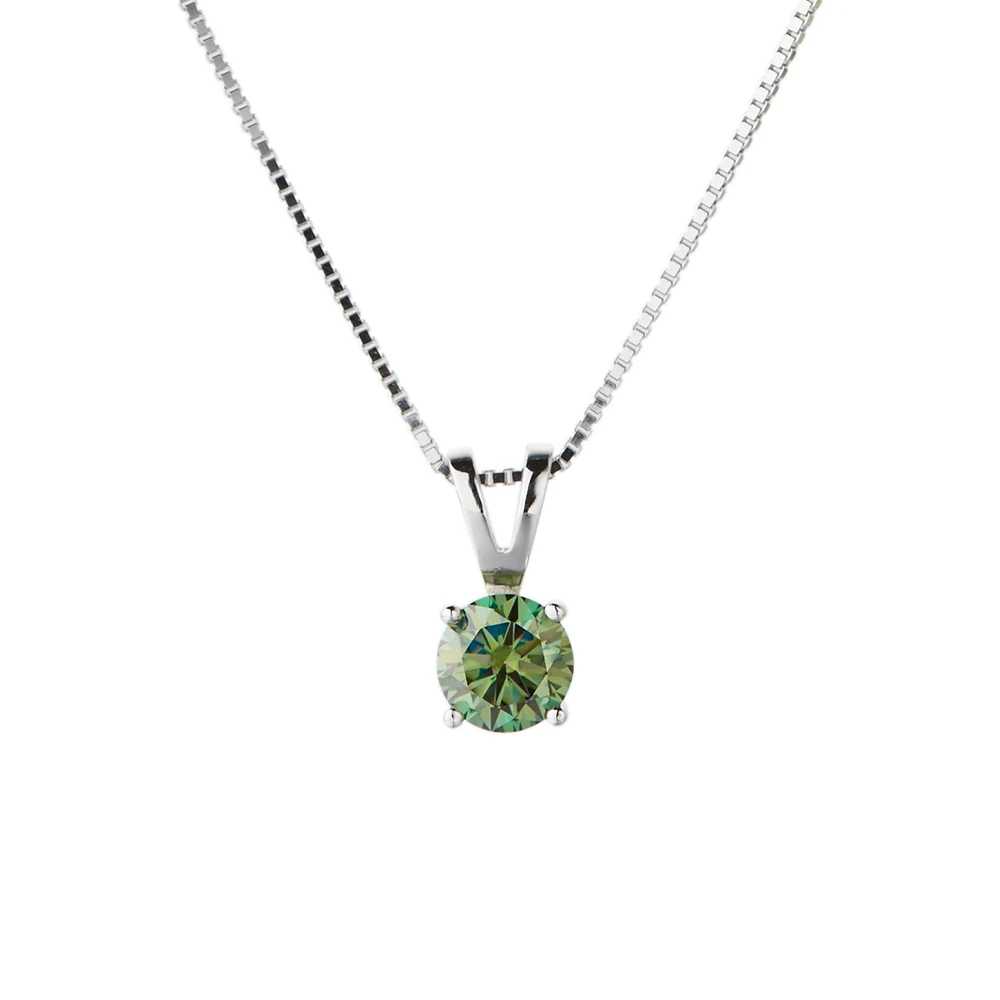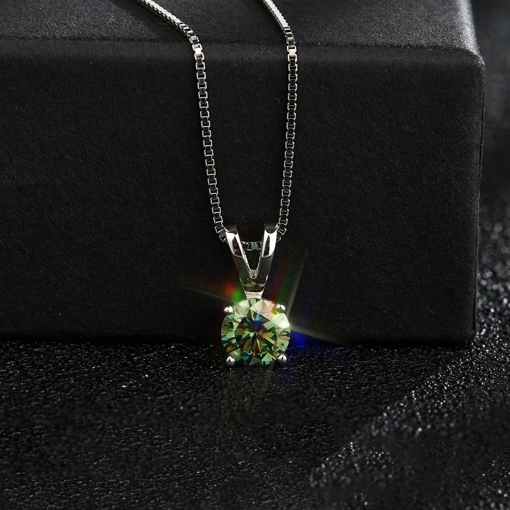 *** Примечание: длина цепи 40 + 5 см (регулируется), Муассанит 1ct 6,5 мм, Муассанит 2ct-8 мм. Каждая партия зеленого муассанита будет немного отличаться по цвету.