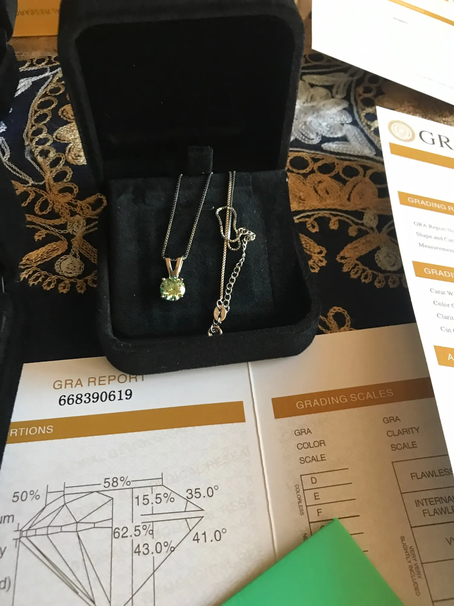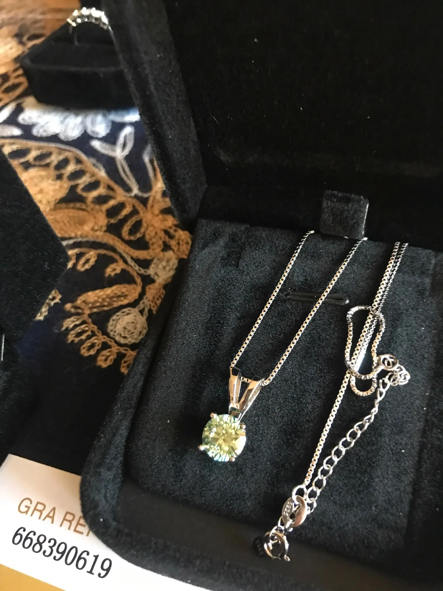 Pack with jewelry box and moissanite certificate