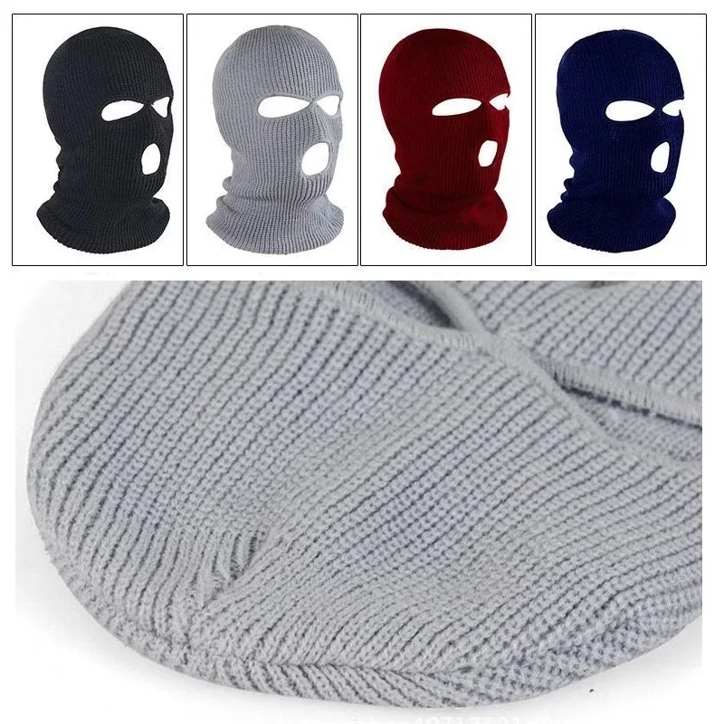 Балаклава для взрослых, теплый пуловер и шапка с тремя отверстиями, шерстяная вязаная маска для лица для мужчин и женщин, зимние вязаные шапки, шапка