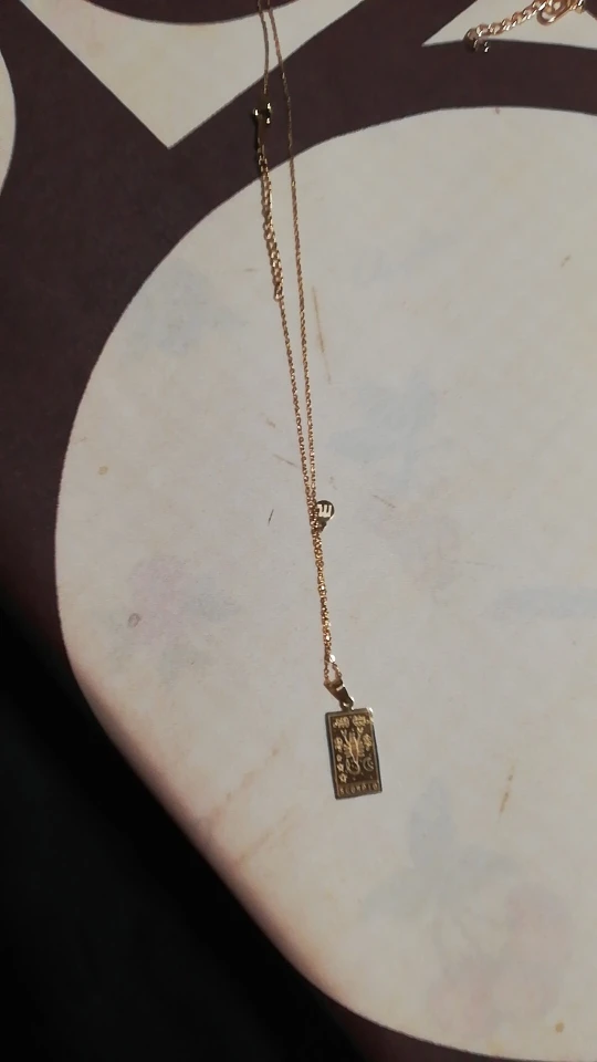 Отлично. Выглядит как настоящее золото и цепочка. Обе стороны также являются «гравировкой» из нержавеющей стали.