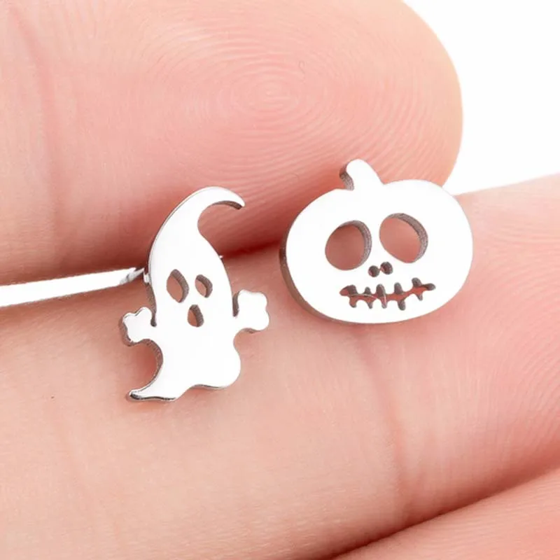 Серьги-гвоздики из нержавеющей стали в стиле хип-хоп, Череп, призра...