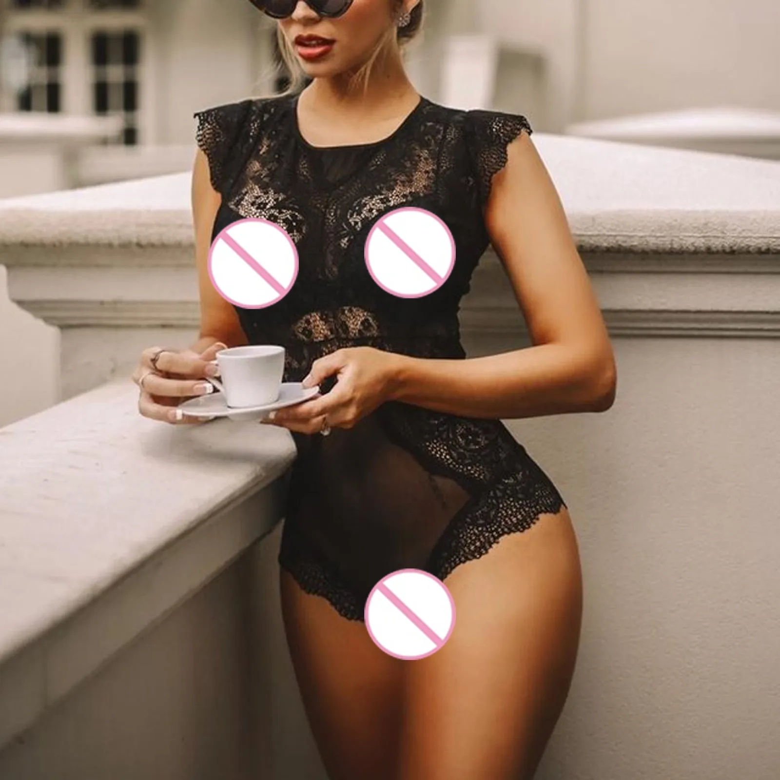 Женское Кружевное боди, соблазнительное черное боди большого размера, прозрачное женское белье, сексуальное нижнее белье, одежда для сна, 2021
