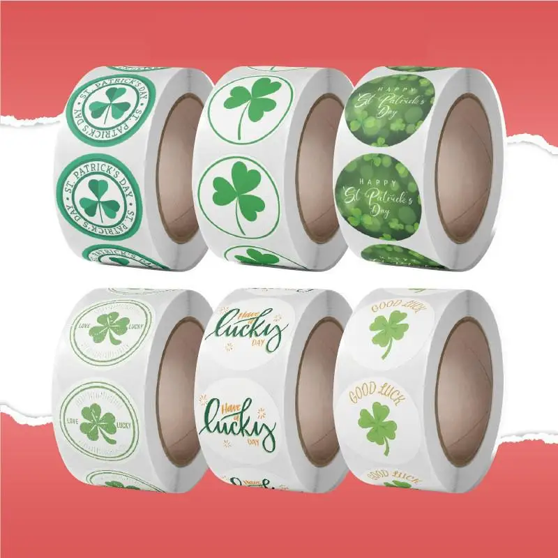 500 штук клевера-символа Дня Святого Патрика джемпер наклейки трилистника рулон Lucky этикетки для печати зеленый наклейки в форме листьев клевера для вечерние украшения и ремесла