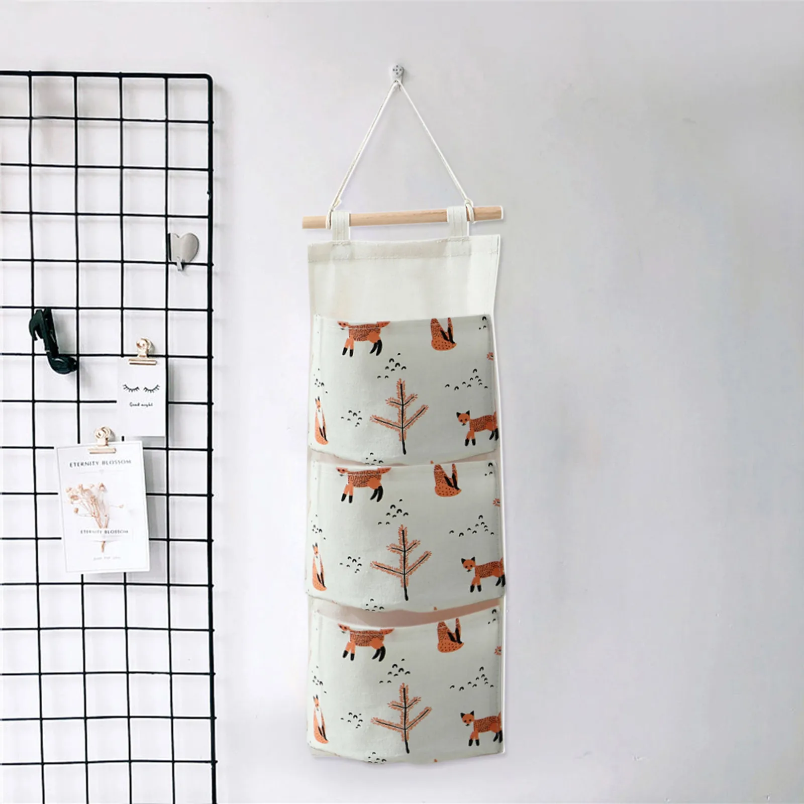 Отделка для хранения, шкаф, настенная подвесная сумка, вешалка с 3 карманами, милые Мультяшные животные, домашний текстиль, коробка-органайзер, корзина для белья
