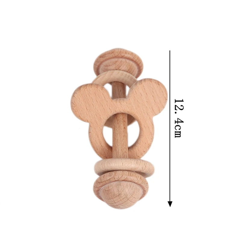 Деревянные Прорезыватели для зубов, деревянные погремушки, вязаные бусины, медведь, колокольчики, Детские висячий грызунок, буковое деревянное кольцо, обучающая игрушка Монтессори, 1 шт.