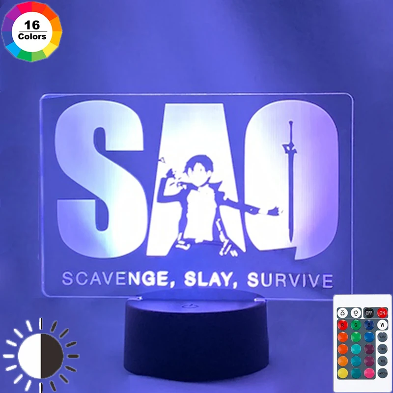3D светодиодный ночсветильник с аниме-мечом, лампа для спальни, декор, светильник Сан-киригая, Kazuto, настольная лампа Yuuki Asuna, подарок