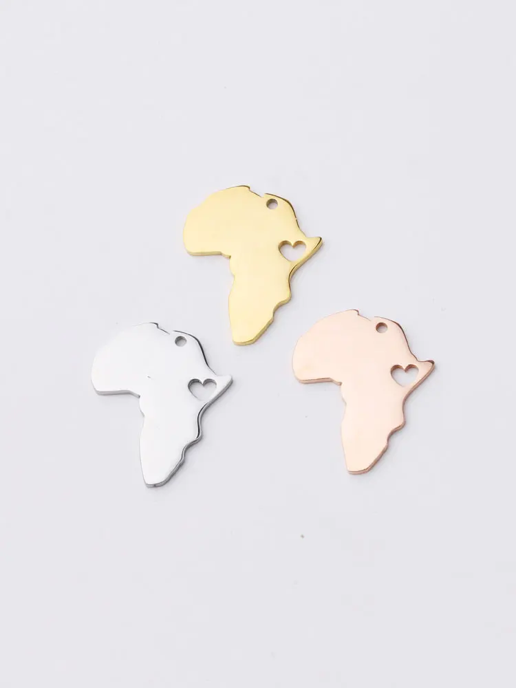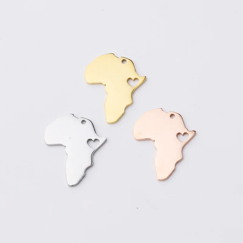 Подвески из нержавеющей стали для изготовления ожерелий, браслетов, брелоков, ювелирных изделий, 20 шт., 25*20 мм, сердце, Карта Африки