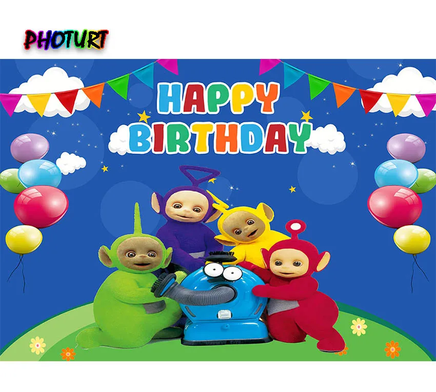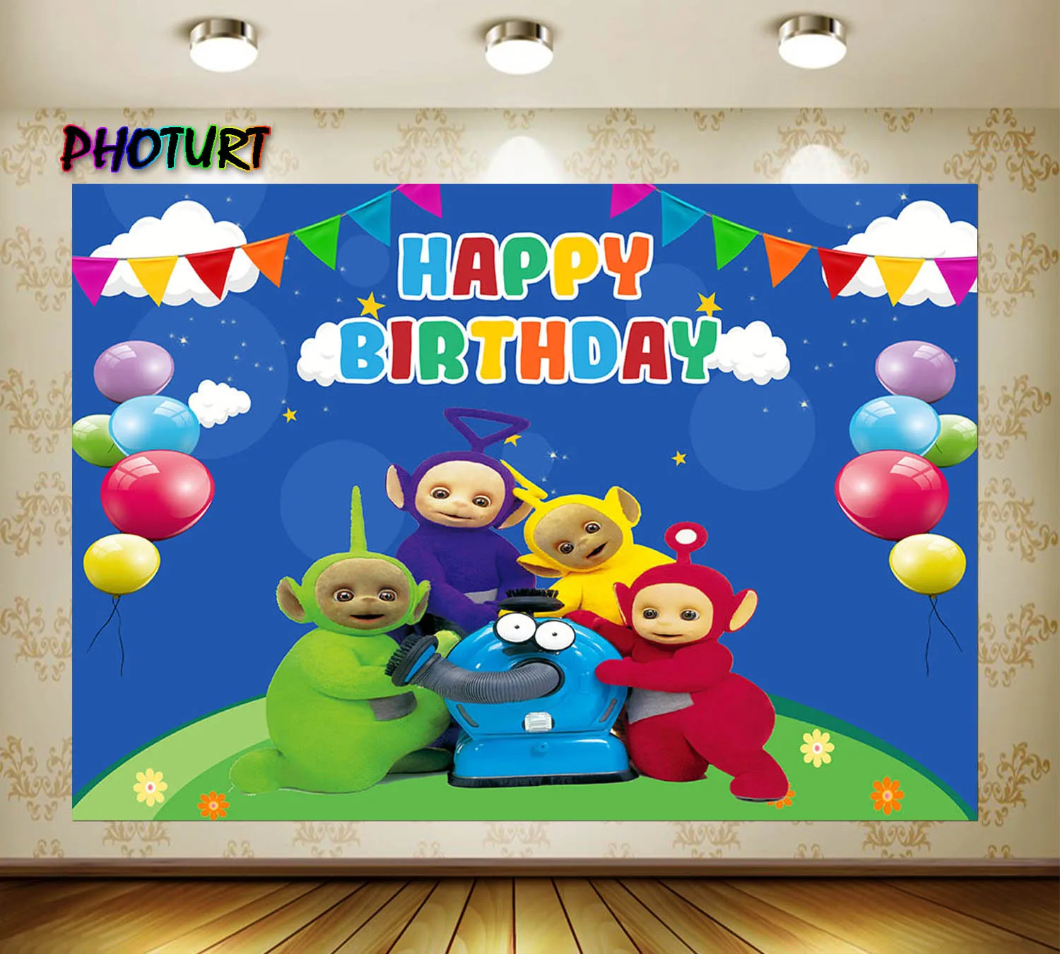 Фотофон для детской фотосъемки на день рождения с изображением Телепузиков воздушный шар флаг полиэстер винил реквизит для фотостудии