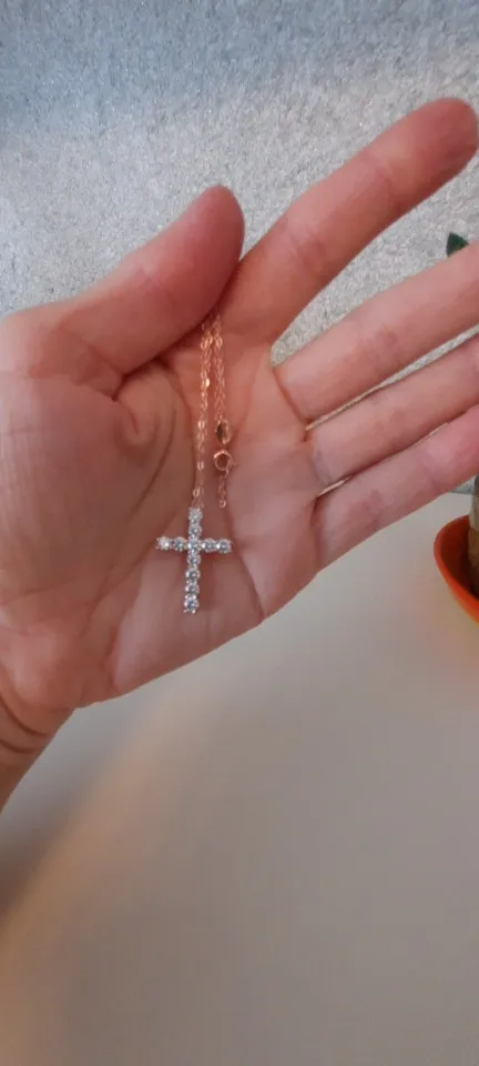 Крестик отличный, камни сверкают, тестер прошли все камни, на крестике есть проба S925, цепочка 45 см проба S925, крестик лежал отдельно в пакетике и цепочка лежала отдельно в пакетике, все лежало в очень красивой коробочке, доставка быстрая, полностью отслеживались, пришло смс на телефон что посылка пришла, получила в постомате около дома по коду в смс сообщений. В подарок продавец положил серёжки бижутерия. Рекомендую в распродажу можно очень выгодно купить, у продавца всегда есть купоны на скидку и плюс для подписчиков магазина тоже есть скидка, иногда купоны приходят в сообщений от магазина. В комплекте была салфекта для серебра. Камешки по 3 мм каждый. Размер крестика 16*23мм.