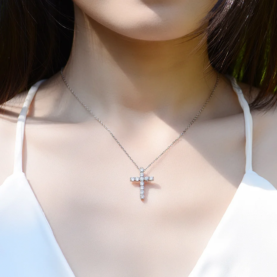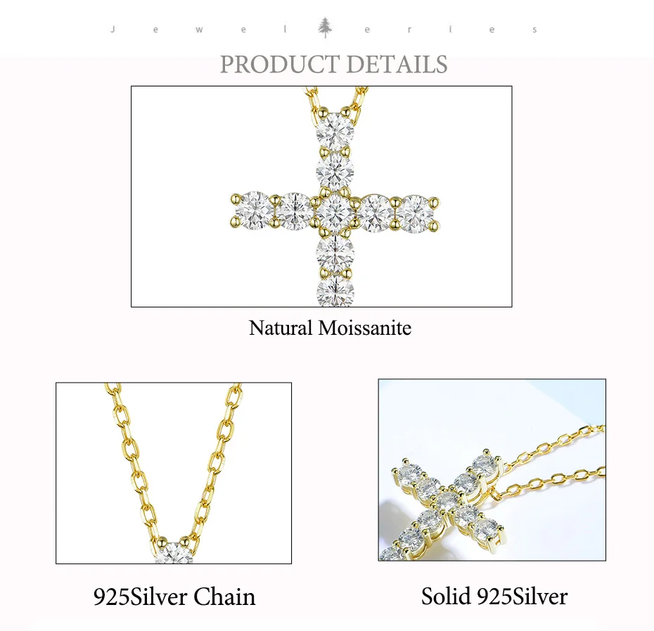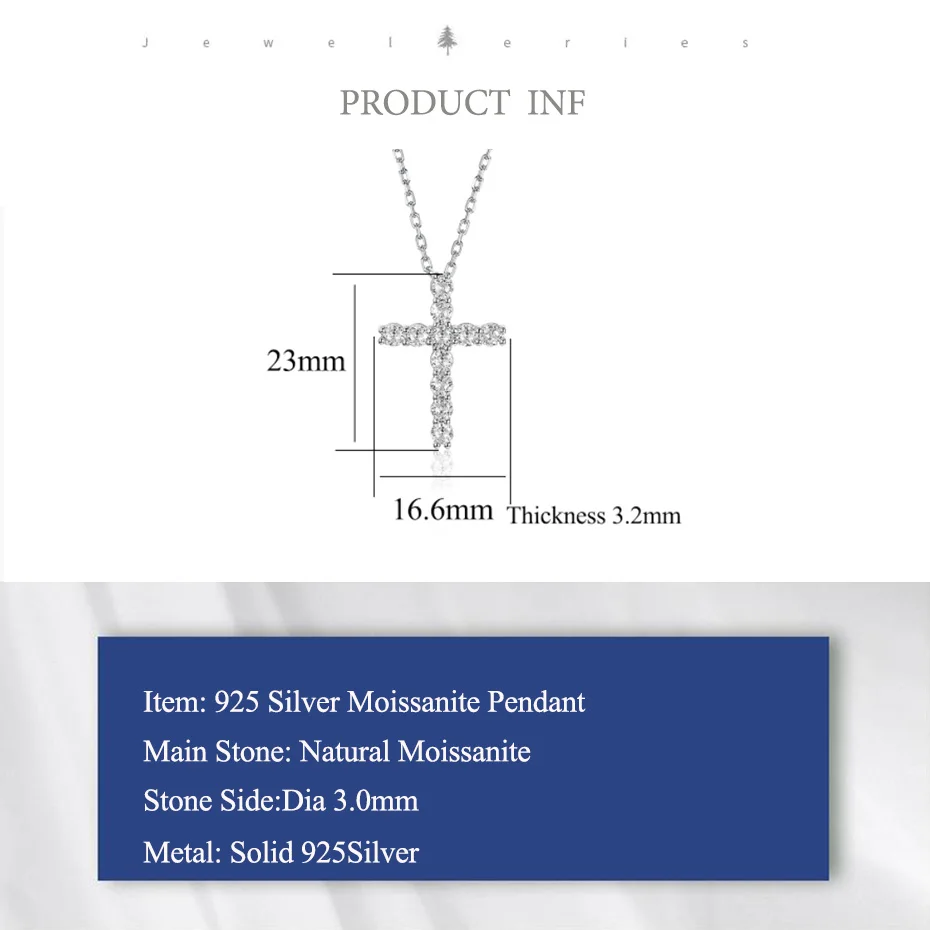 Кулон Kuololit с муассанитом 3,0 мм, Крест из твердого стерлингового серебра 925 пробы, роскошное ожерелье для помолвки, подарки невесты