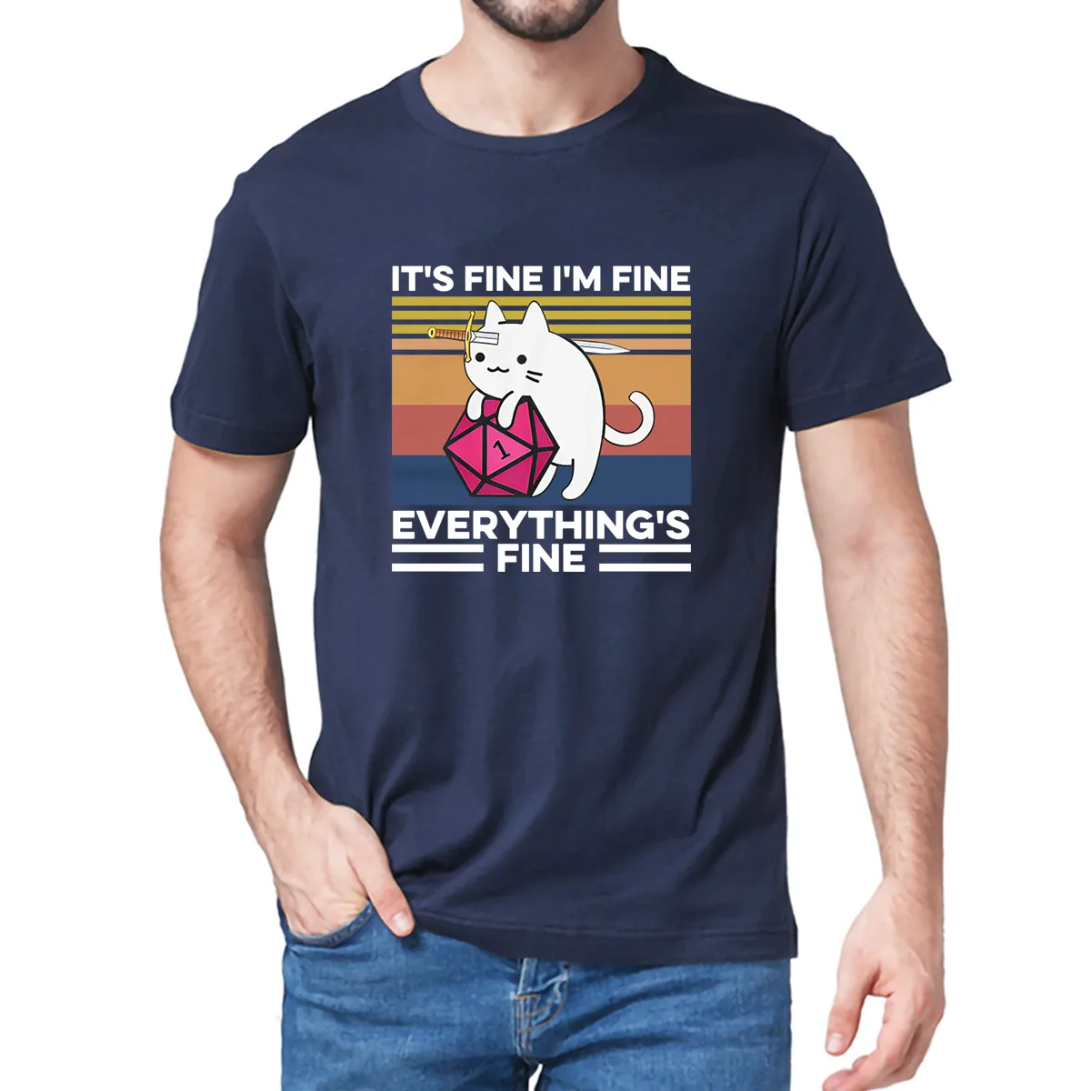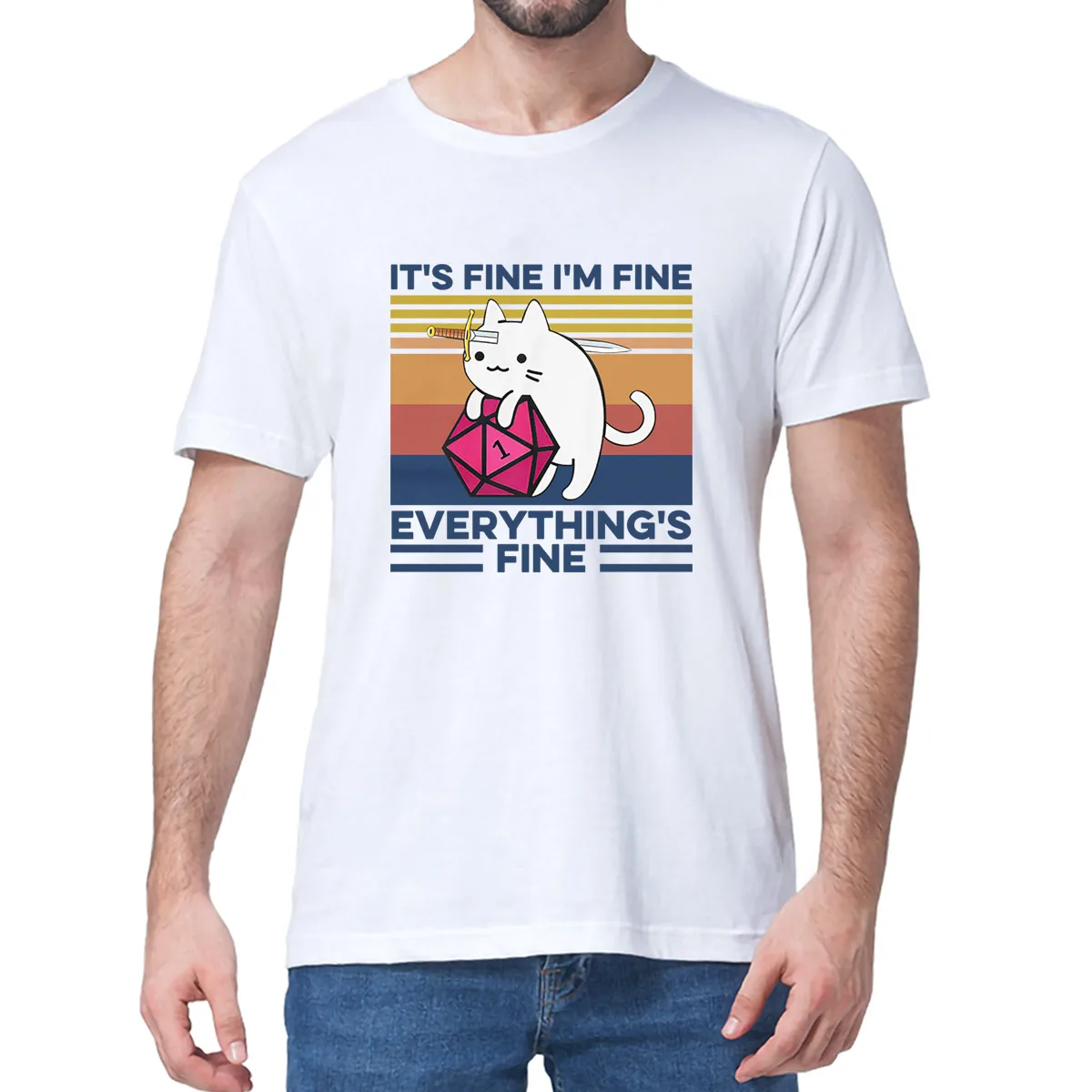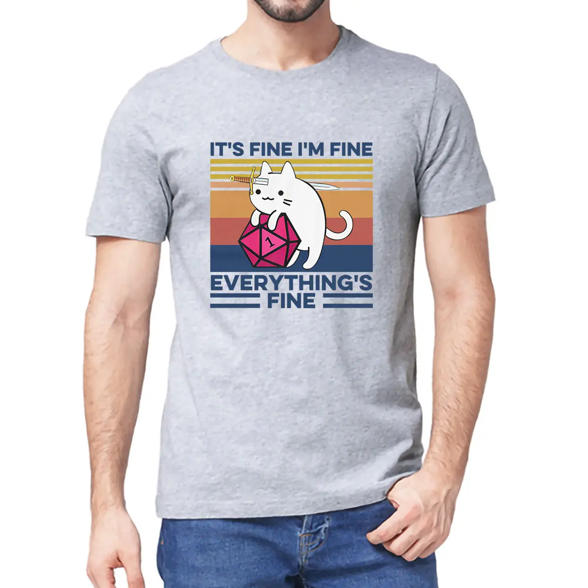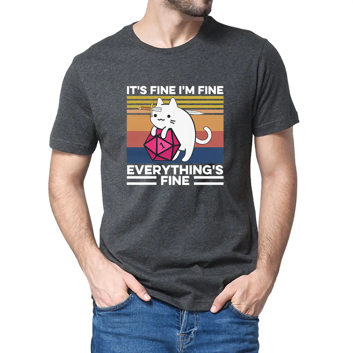 Футболка унисекс из 100% хлопка с надписью I'm Fine All is Fine, кошка с ножом для объятий, подземелье, забавный подарок, летняя мужская футболка, женская футболка