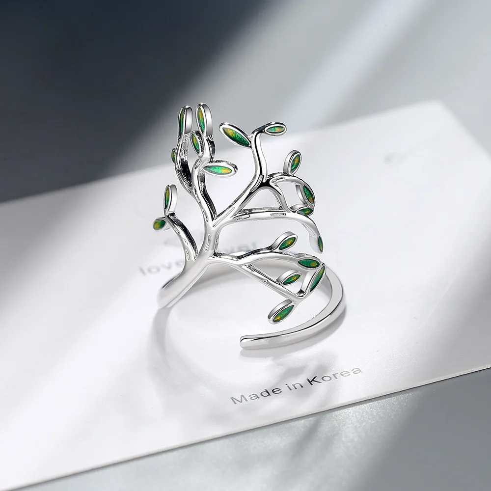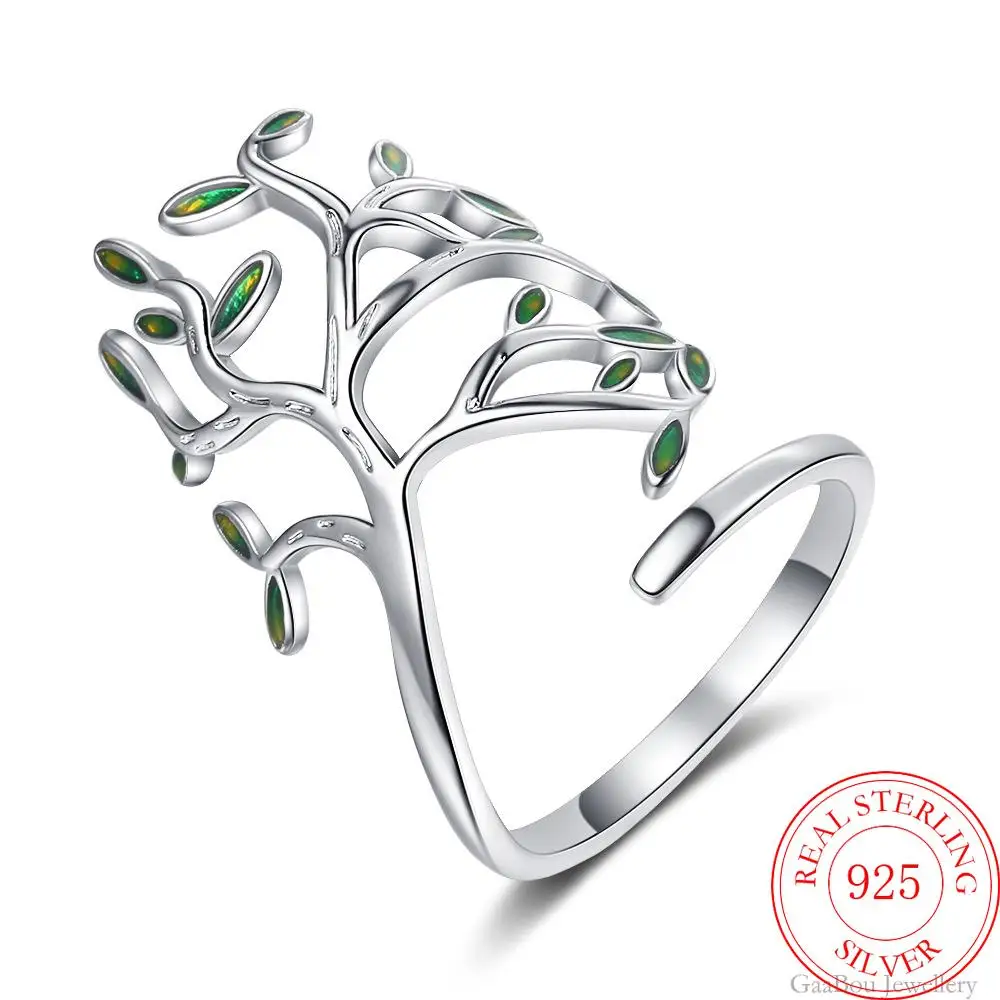925 стерлингового серебра с зелеными листьями Регулируемый открытые, кольца на палец для женщин, девочек-гостей на свадьбе Dorpshipping Anelli изысканные вечерние ювелирные изделия